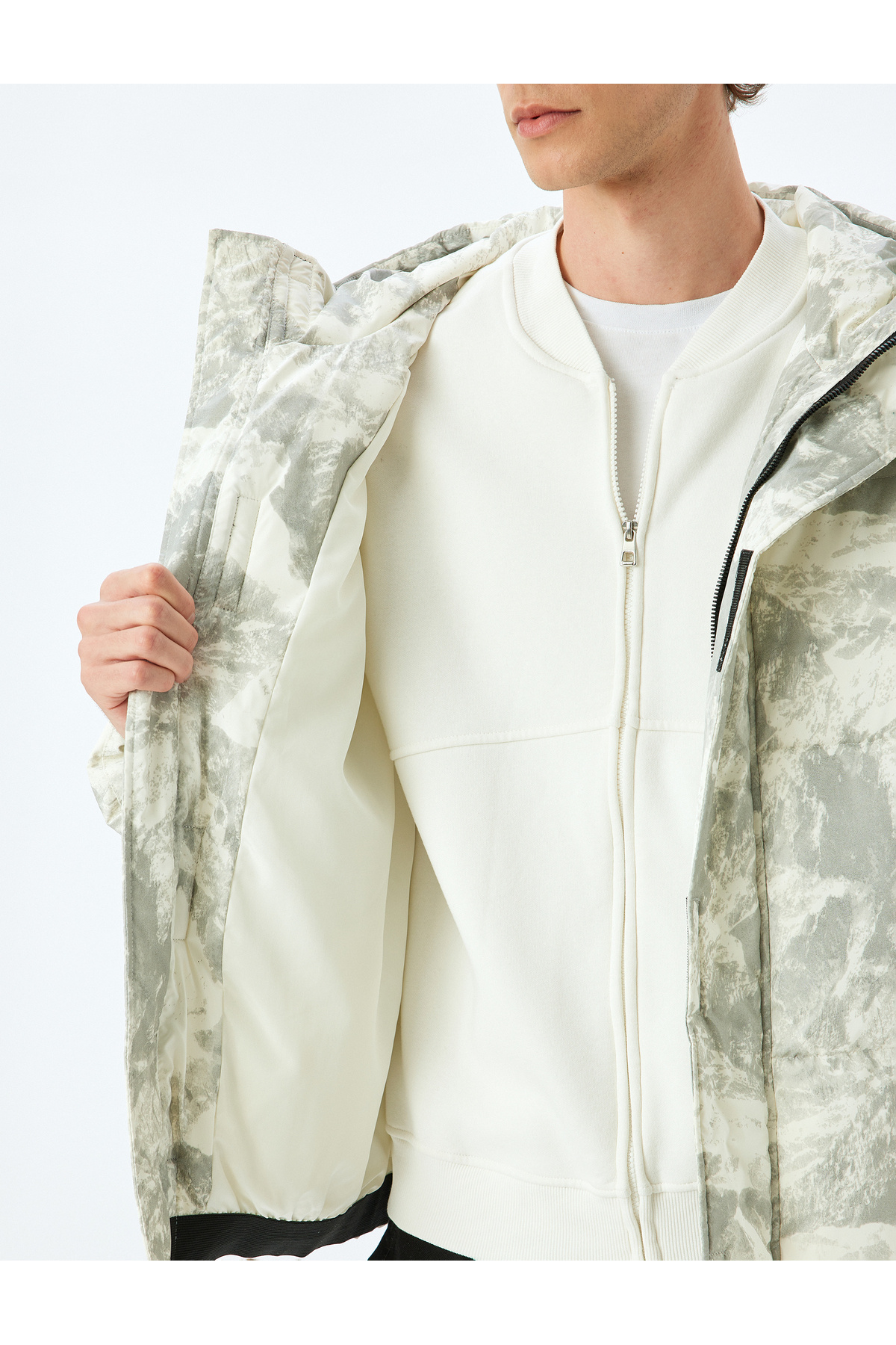 کاپشن پفی کلاه دار با زیپ و بادگیر