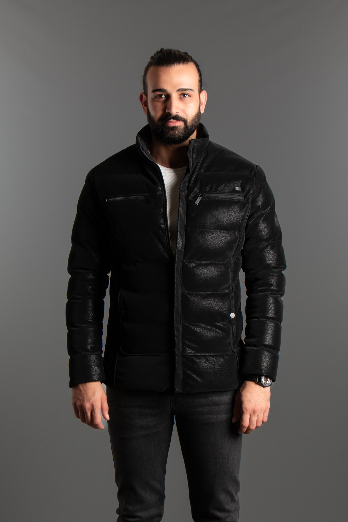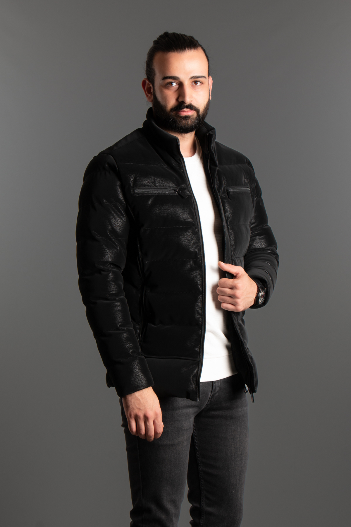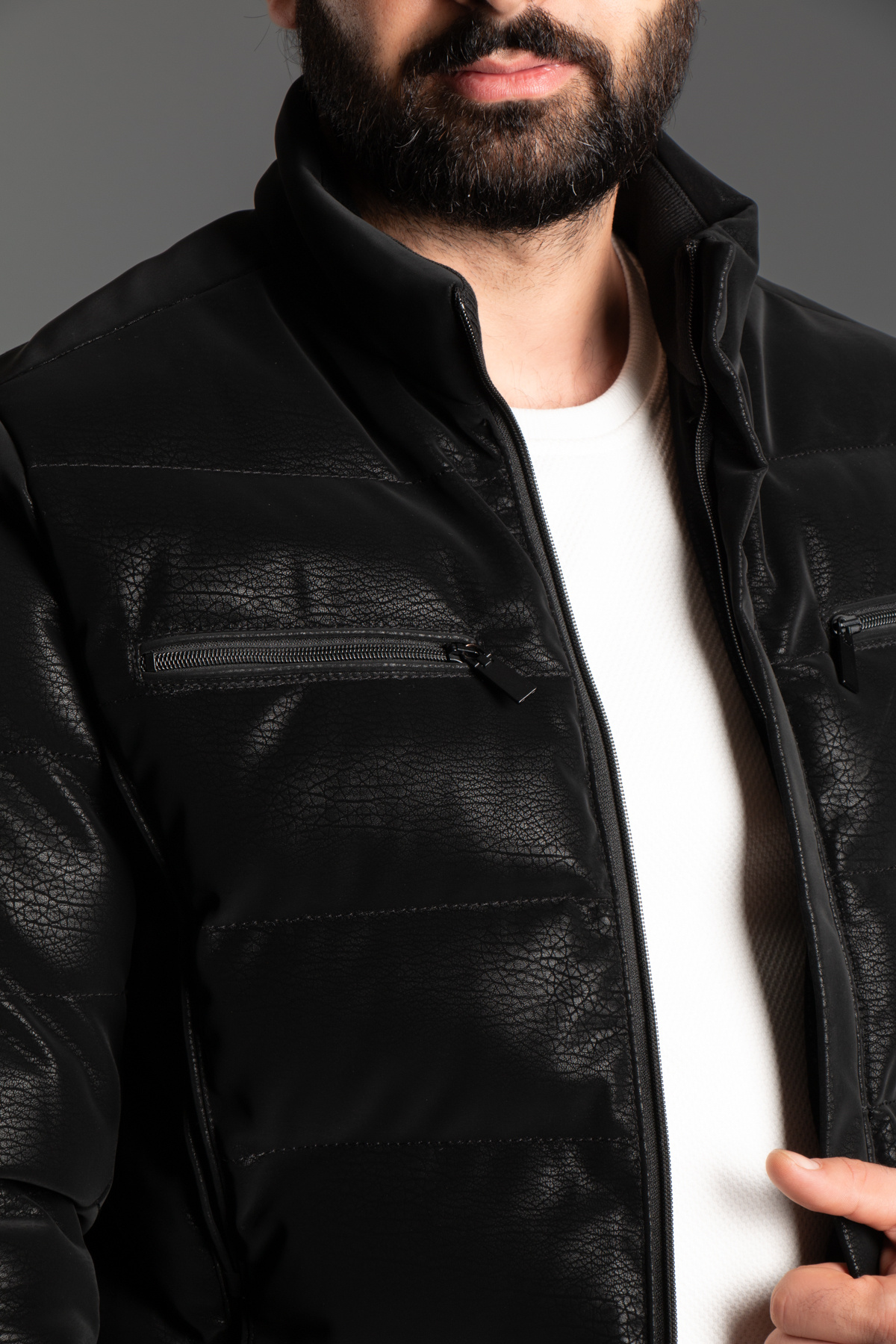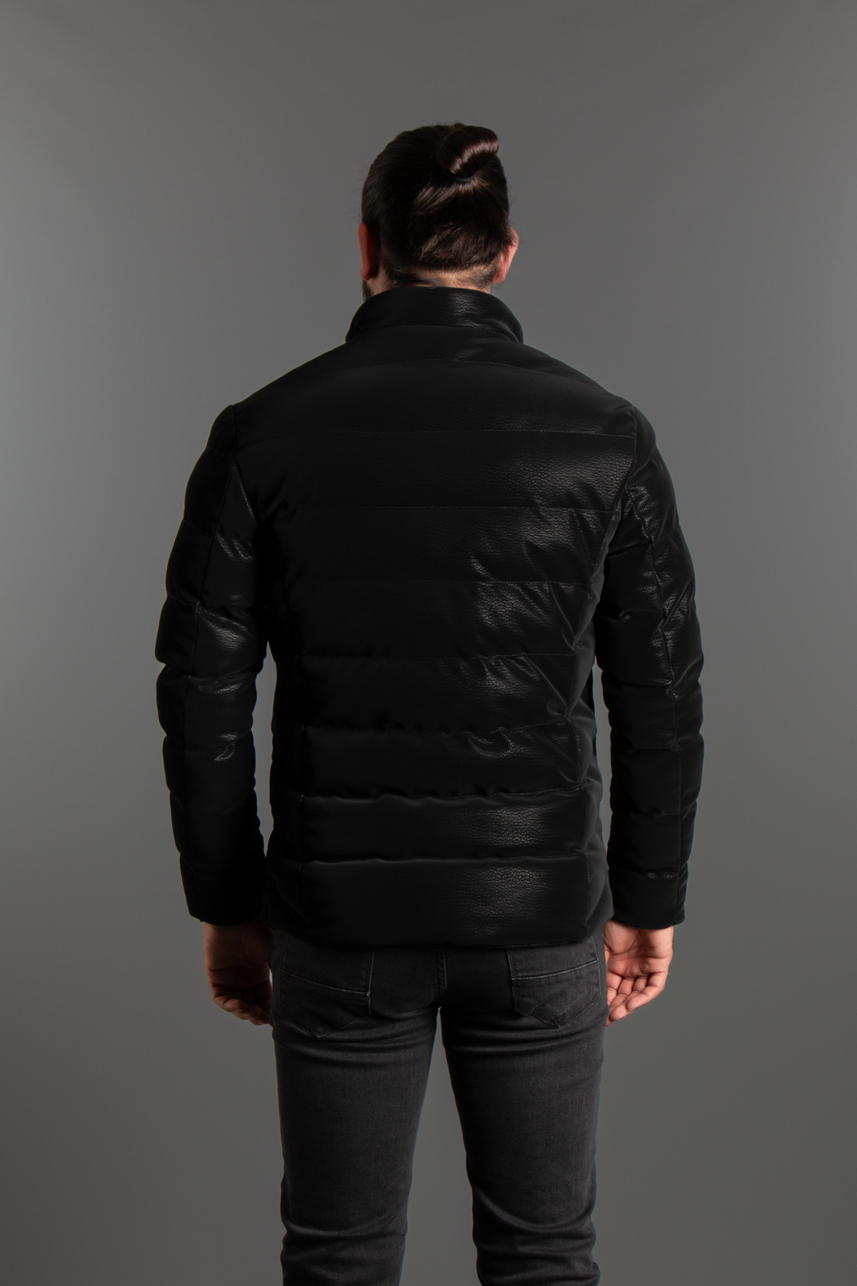 کاپشن چرمی مردانه یقه ایستاده مشکی وارداتی ۵۵۸۱