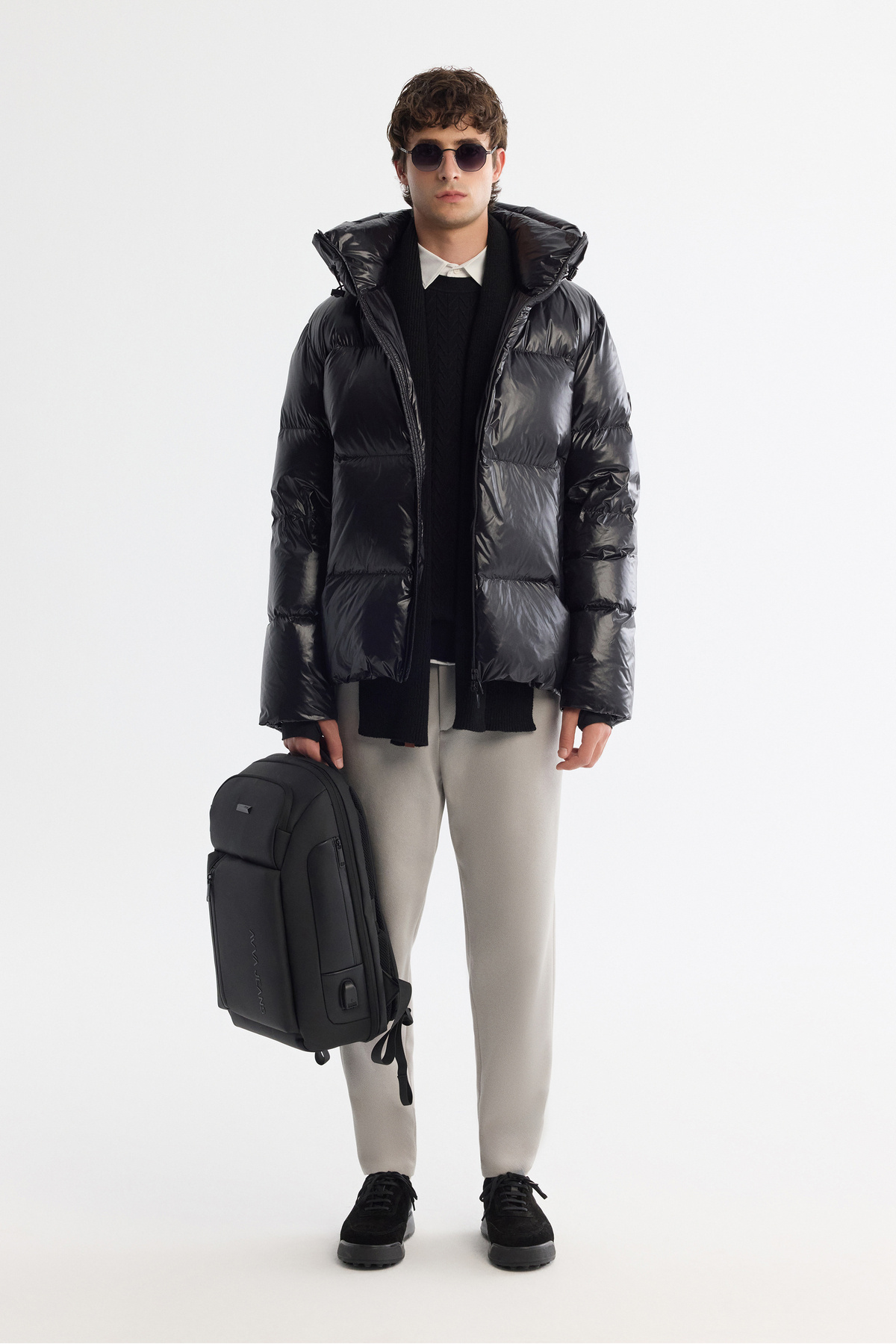 کاپشن مردانه کلاه دار مشکی، ضد آب، ضد باد، مقاوم در برابر -20 درجه سانتیگراد، کاپشن پفی A42Y6182