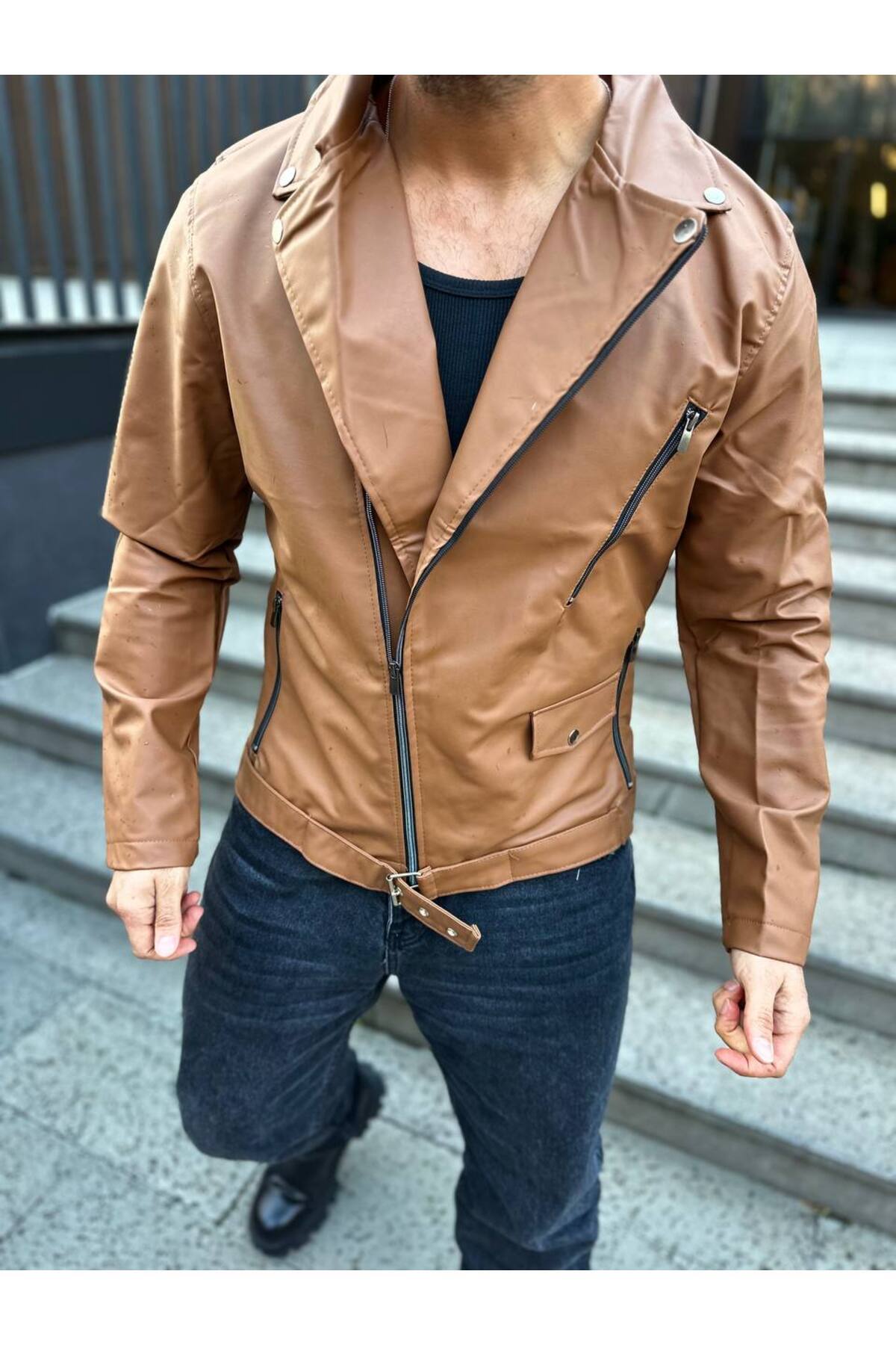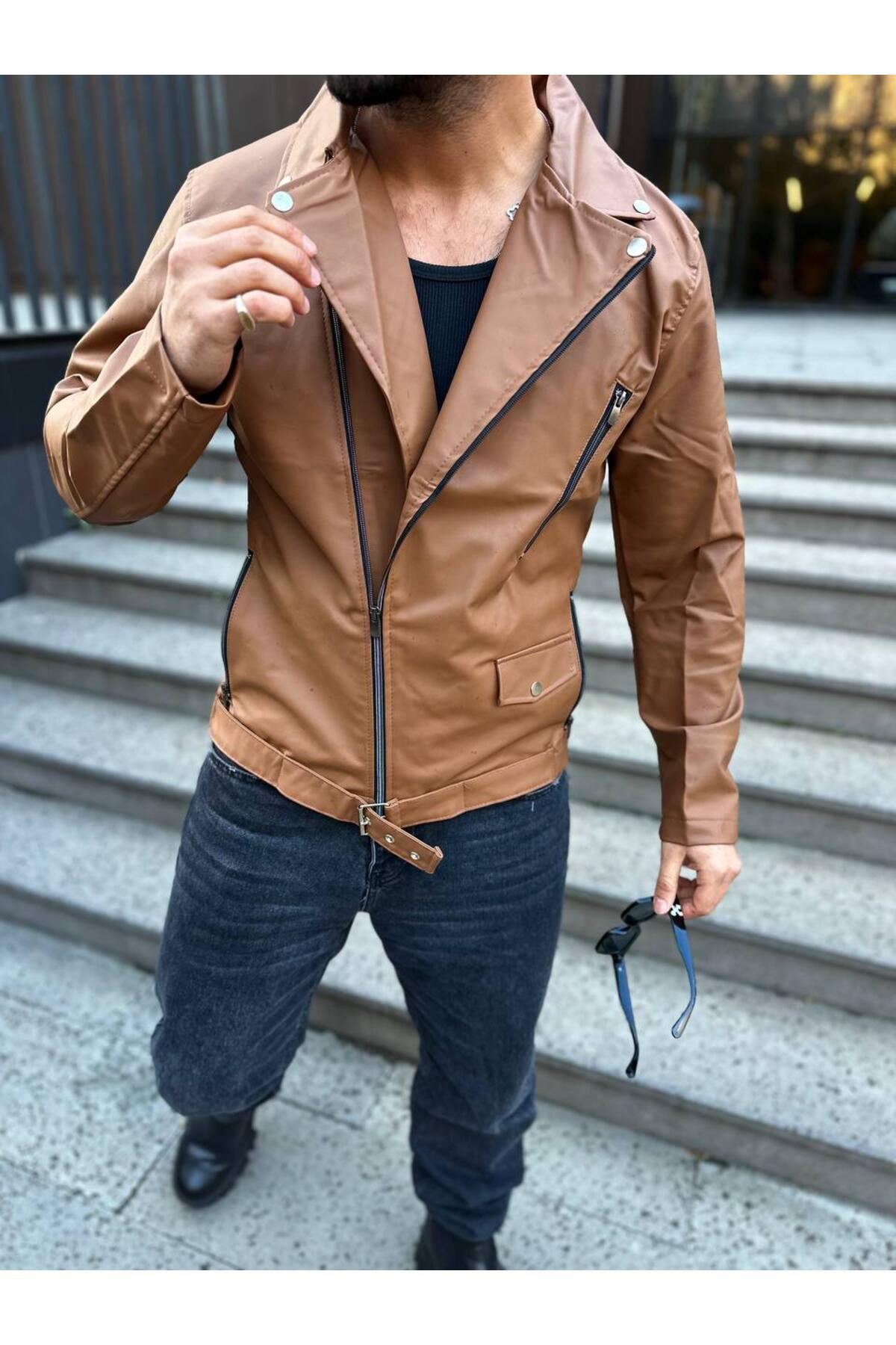 کاپشن چرمی با زیپ ضربدری، کمربند، طرح فصل جدید، جیب