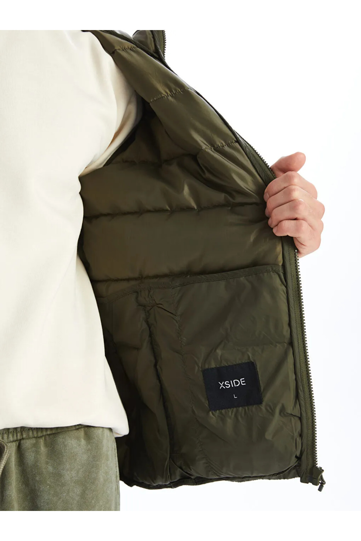 کاپشن پفی مردانه کلاه دار اسلیم فیت خاکی کژوال LCW