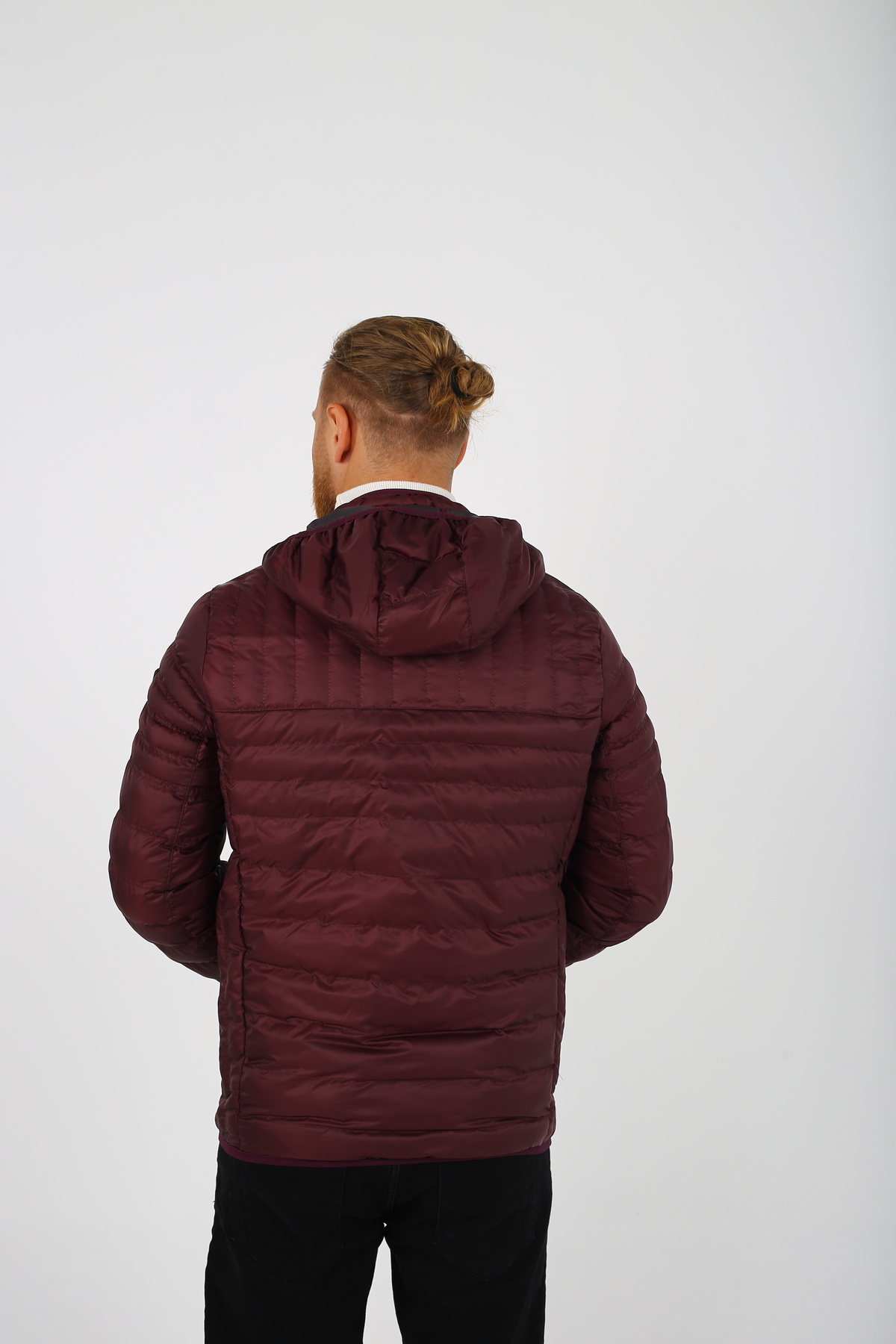 کاپشن مردانه بادگیر کلاهدار و پددار به رنگ زرشکی