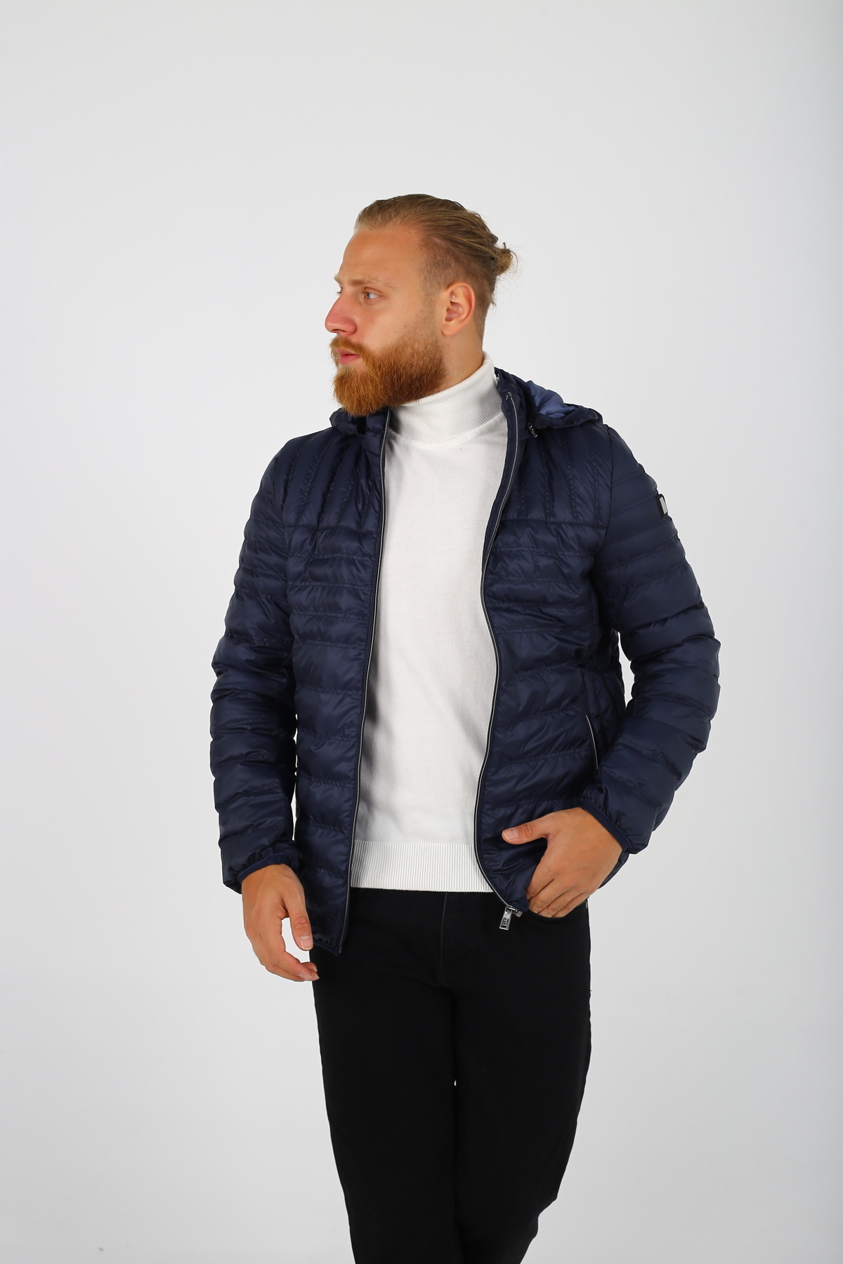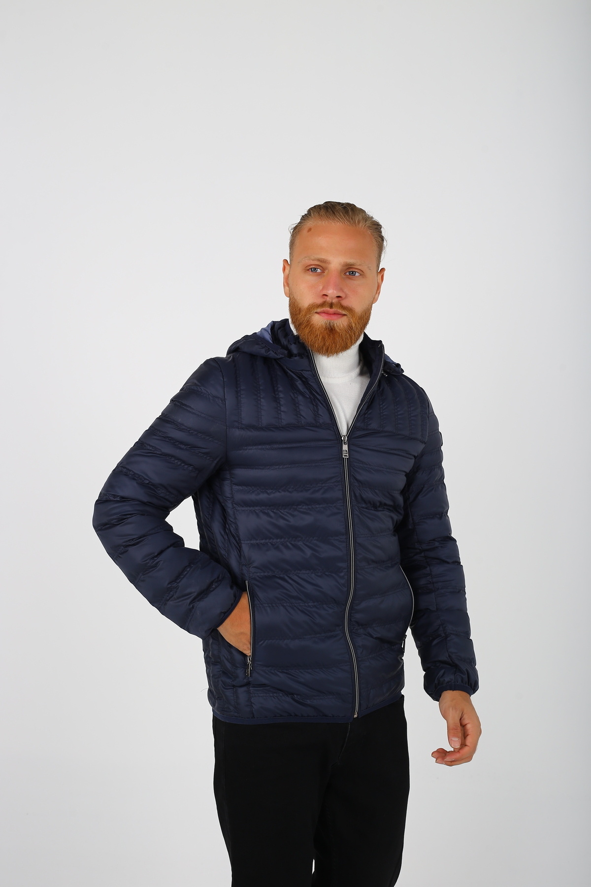 کاپشن مردانه پفی سرمهای کلاهدار ضد باد مردانه