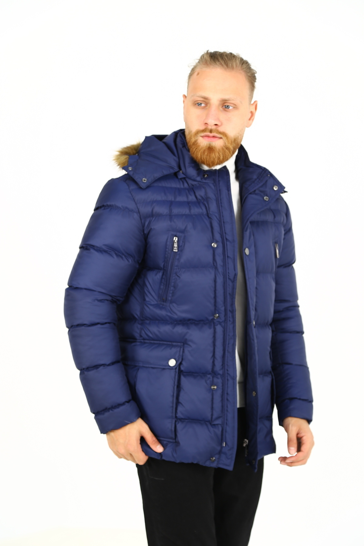 کاپشن مردانه آبی سرمه ای | BRG80185 DAKSEL