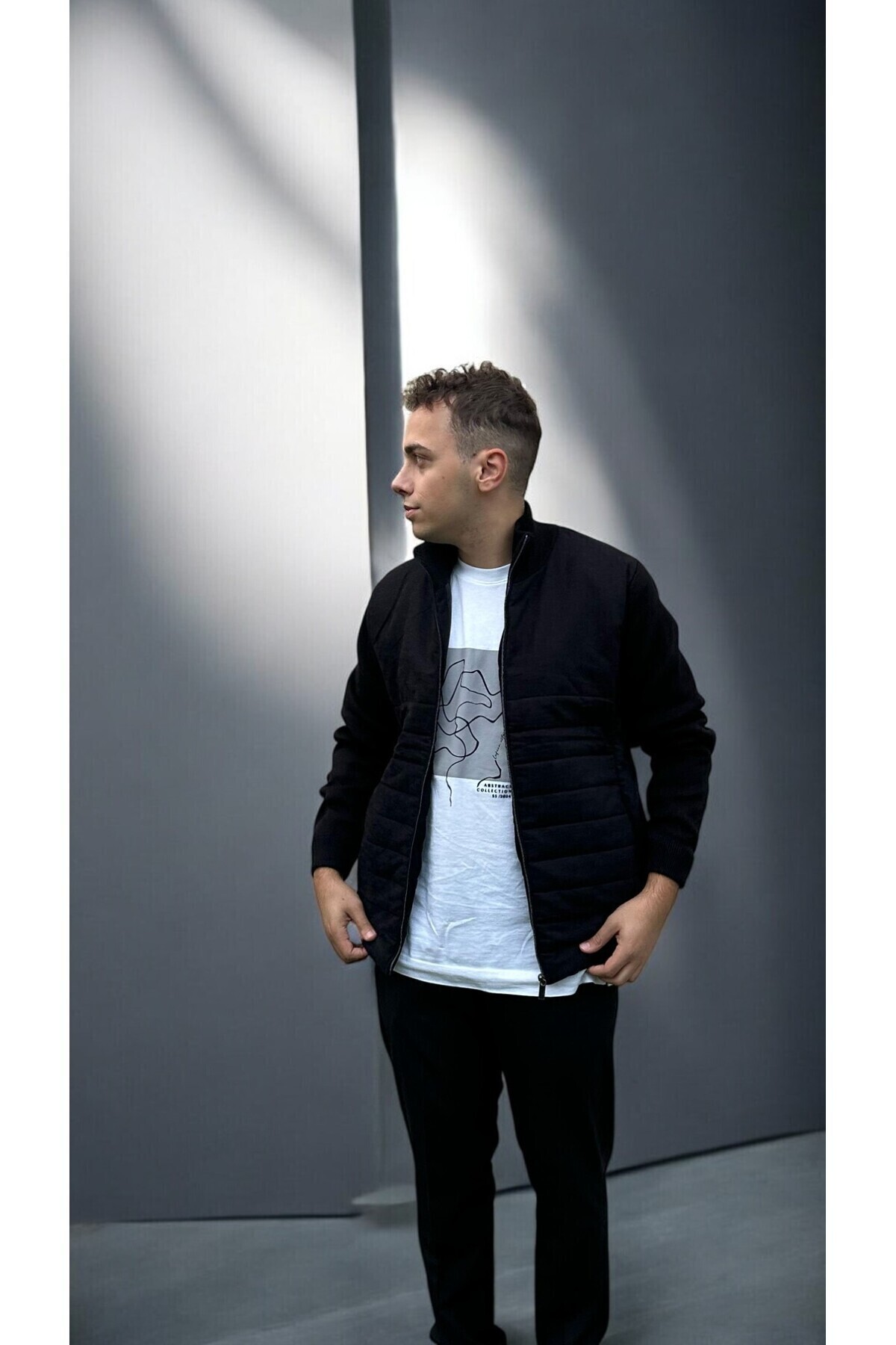 ژاکت یقه بمبر لحافی طرح جیر ترکیبی بافتنی مردانه