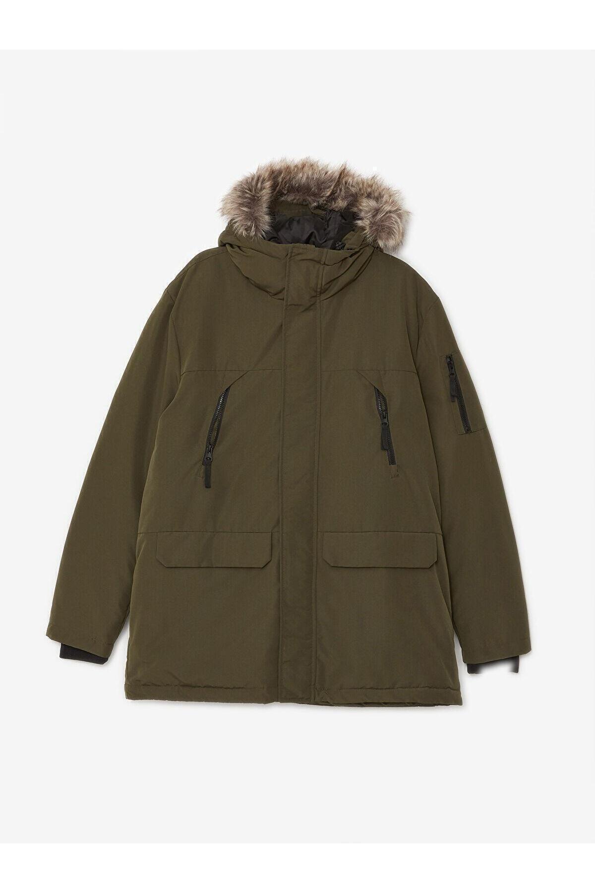 کاپشن مردانه کلاه دار استاندارد LCW کژوال