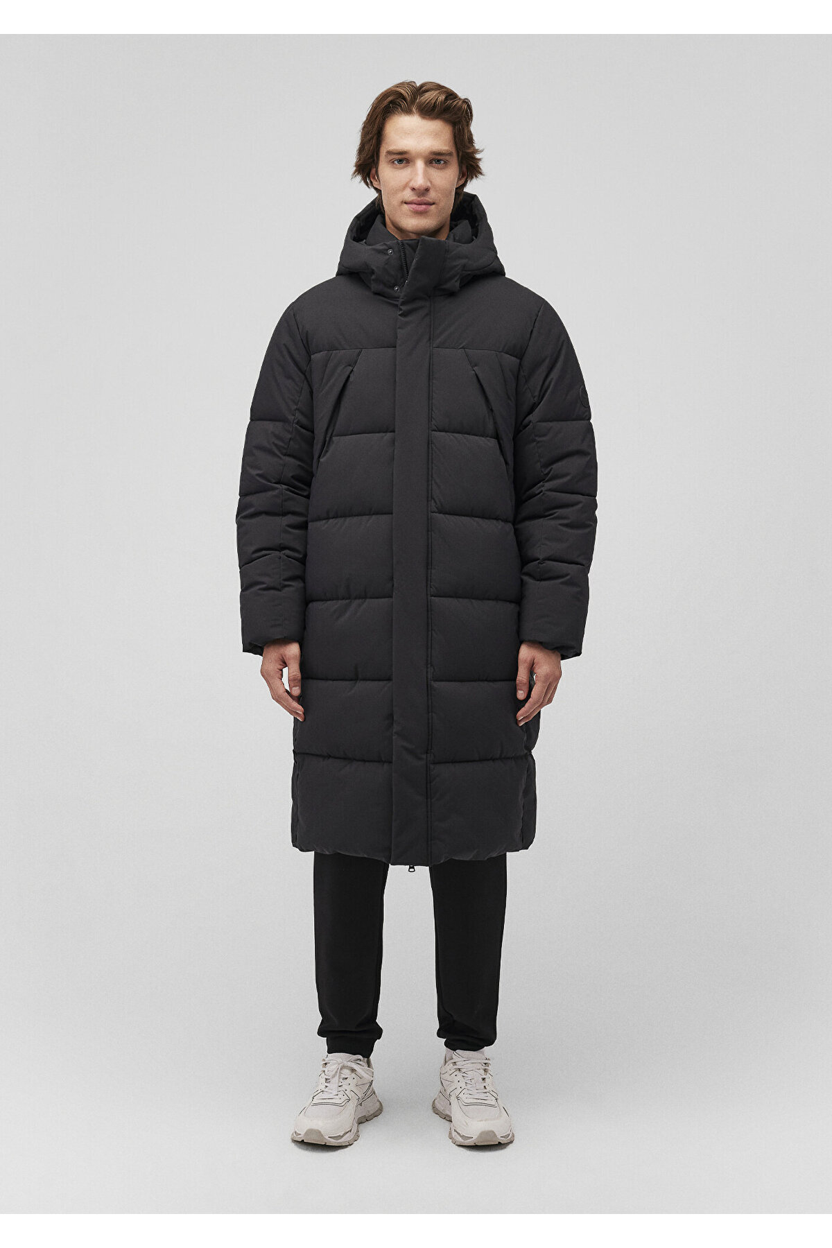 کاپشن پفی بلند کلاه دار مشکی 0110477-900