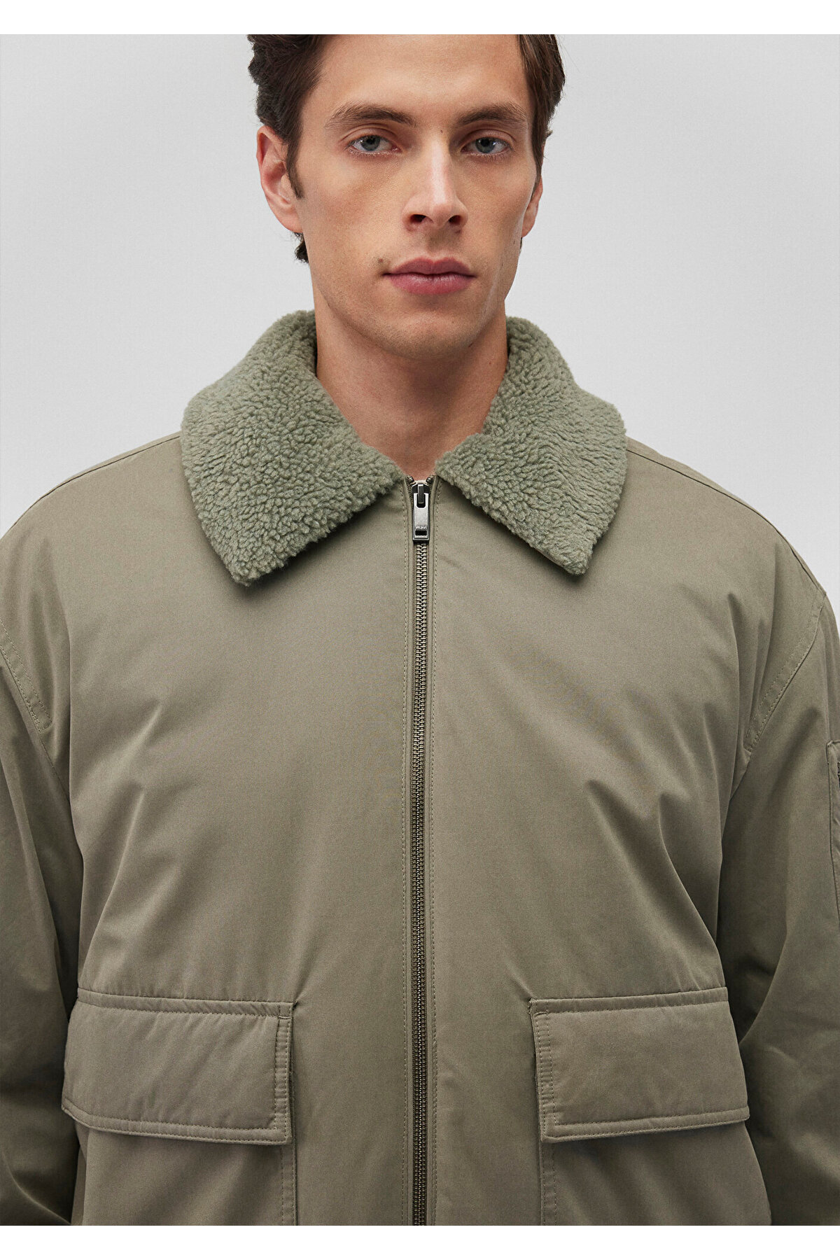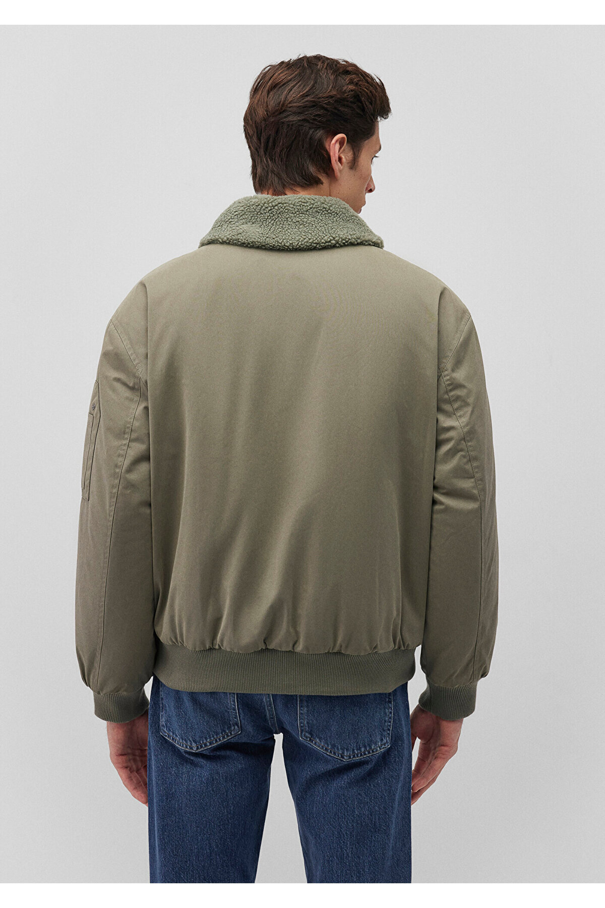 کاپشن بمبر سبز با یقه ایستاده، سایز بزرگ / فیت گشاد 0110465-85485