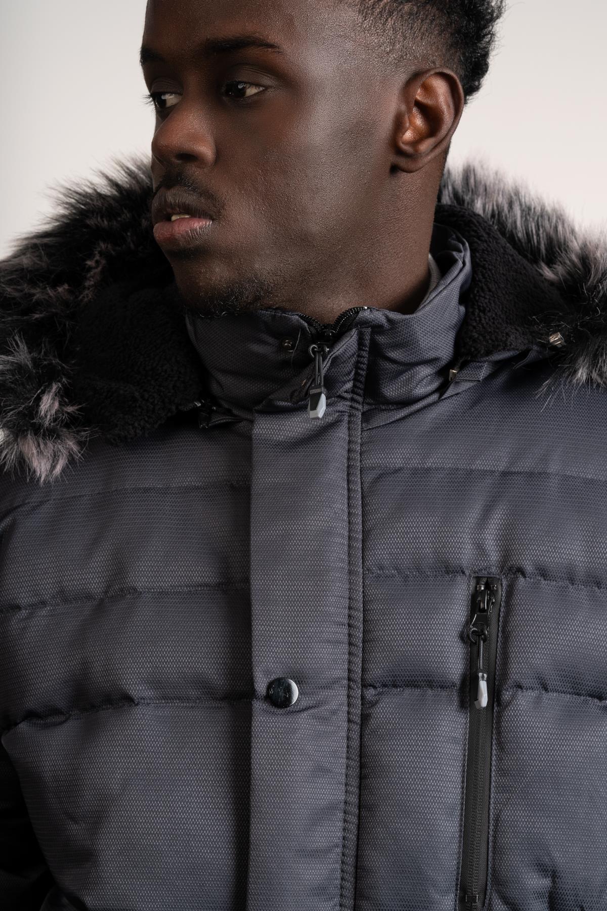 کاپشن کوتاه اسلیم فیت با آستر خز و کلاه (خز و کلاه قابل جدا شدن هستند)