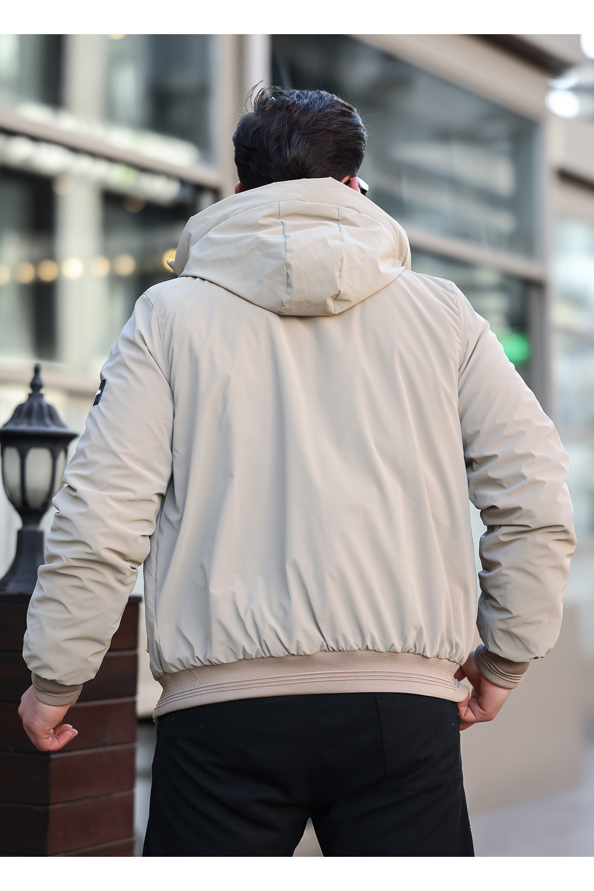 کاپشن زمستانی مردانه با الیاف پر شده و کلاه، کرم