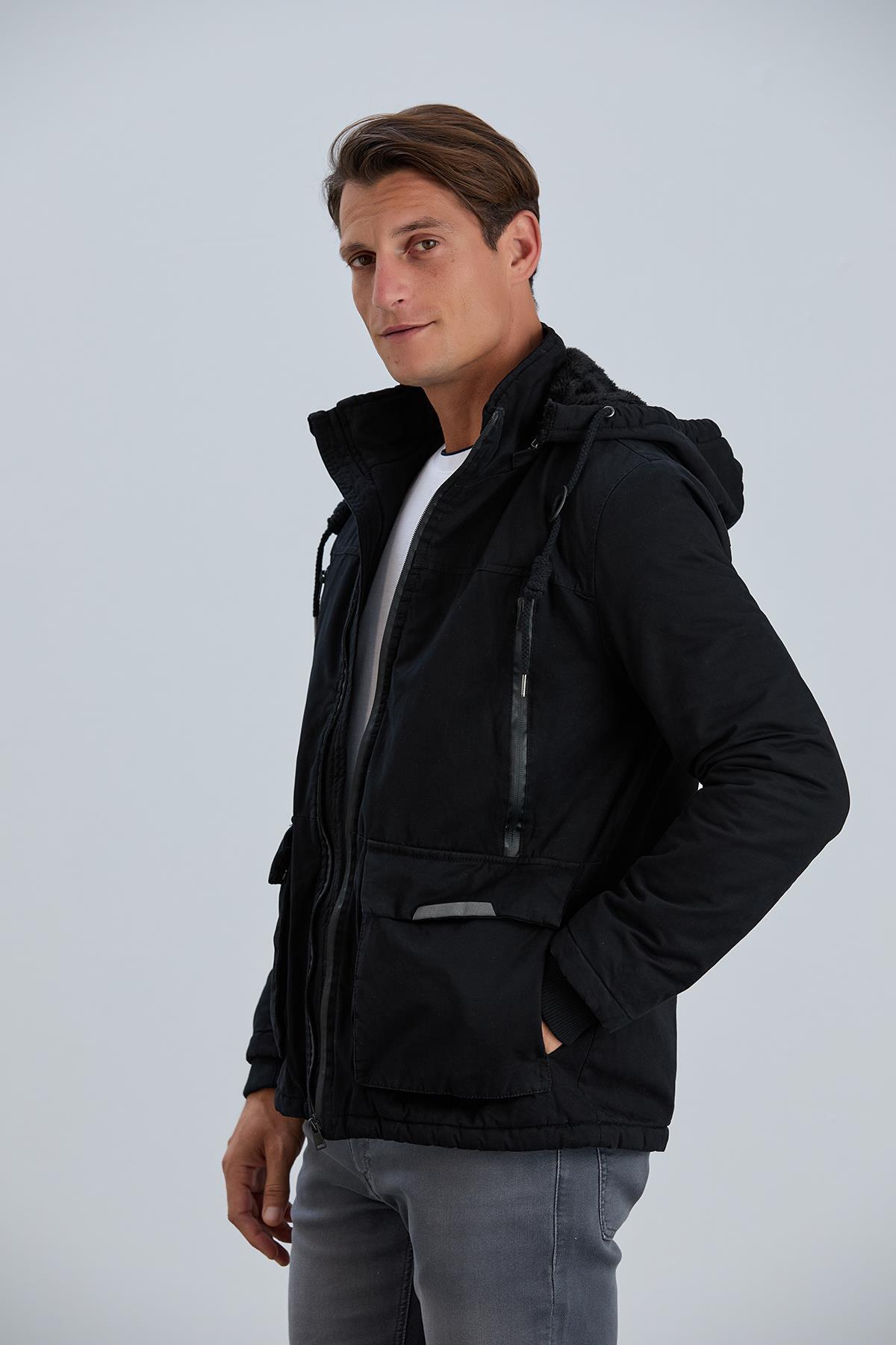 کاپشن مردانه با کلاه و زیپ جداشونده، جنس نخی.