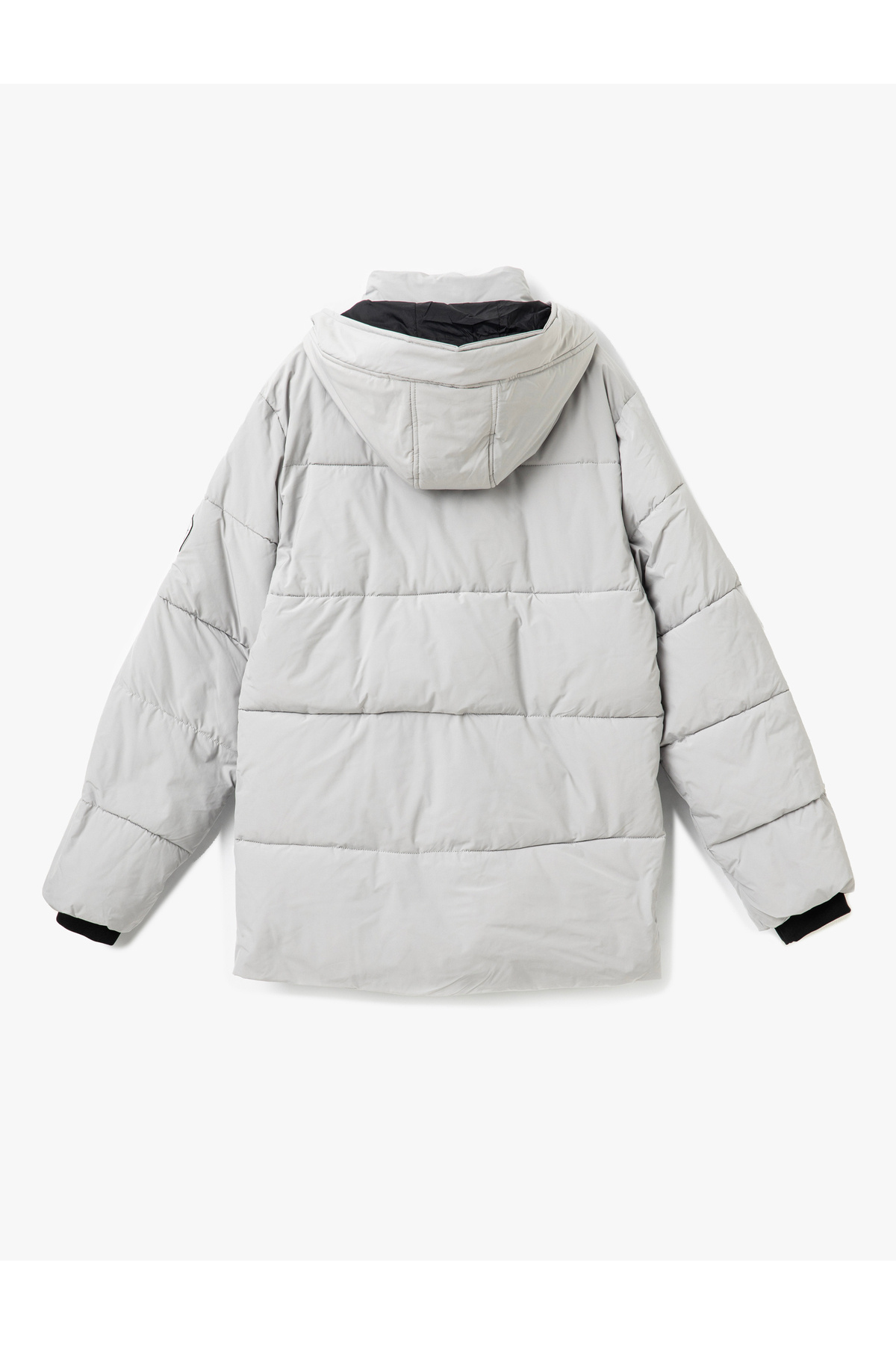 کاپشن پفی کلاهدار اسلیم فیت با جیب طرحدار
