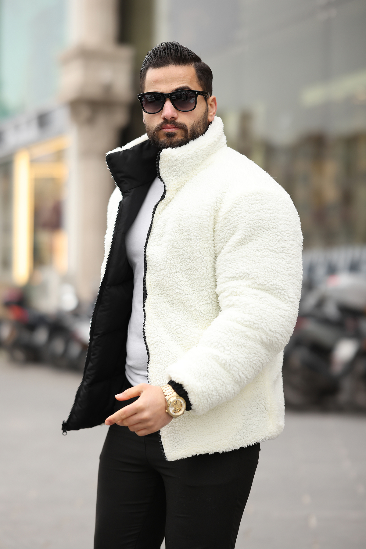کاپشن پفی مردانه دو رو، قابل پوشیدن، ضد آب و باد با آستر خز
