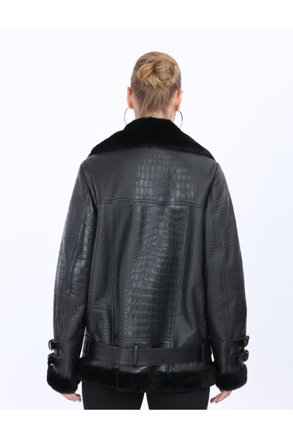 کت چرم/خز اصل با جزئیات کمربند و زیپ.