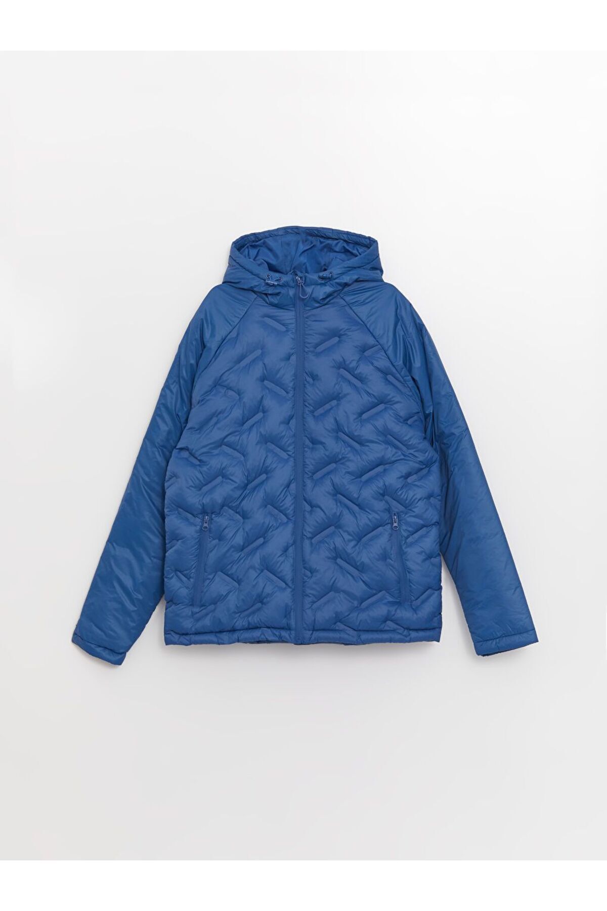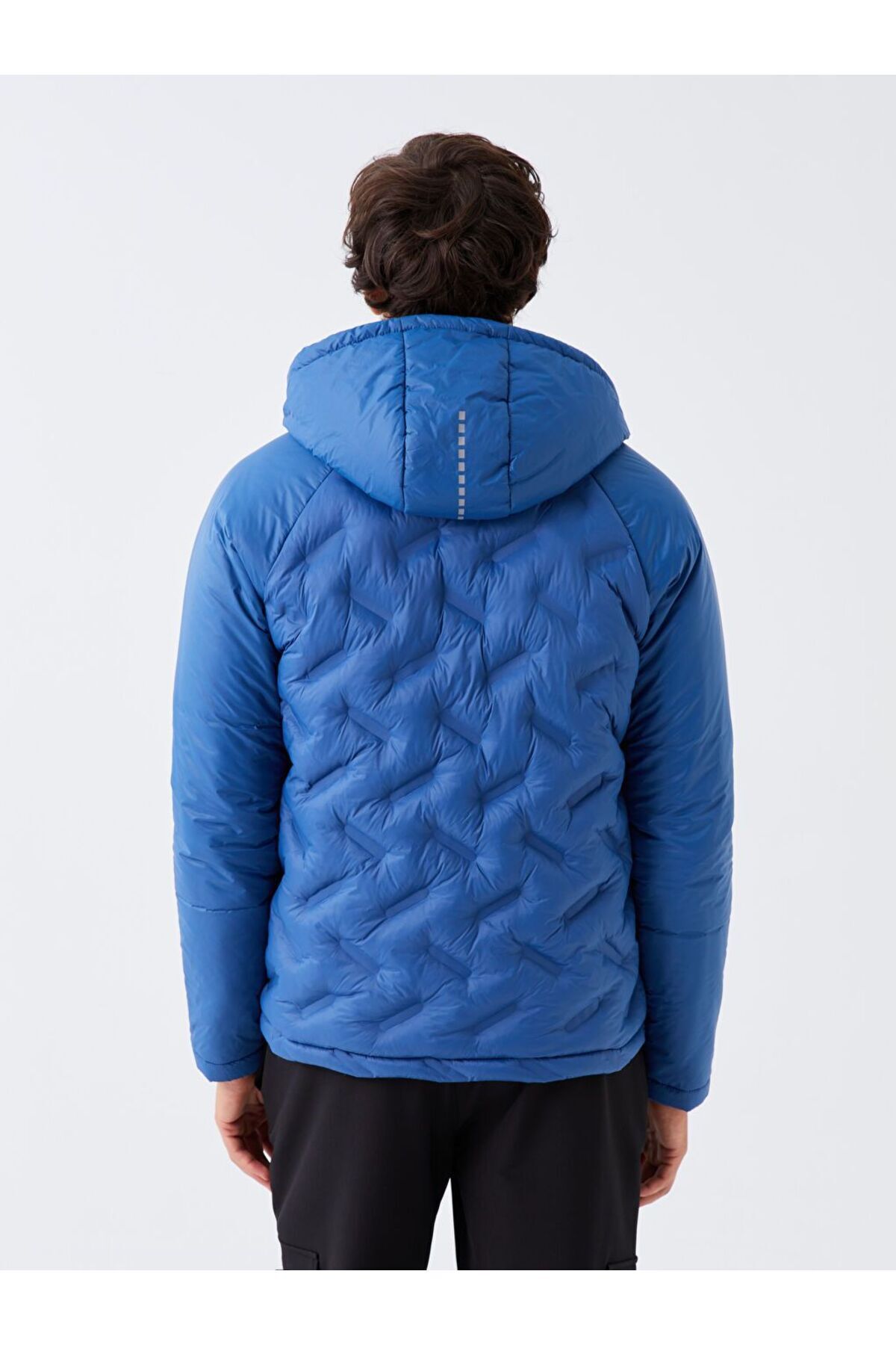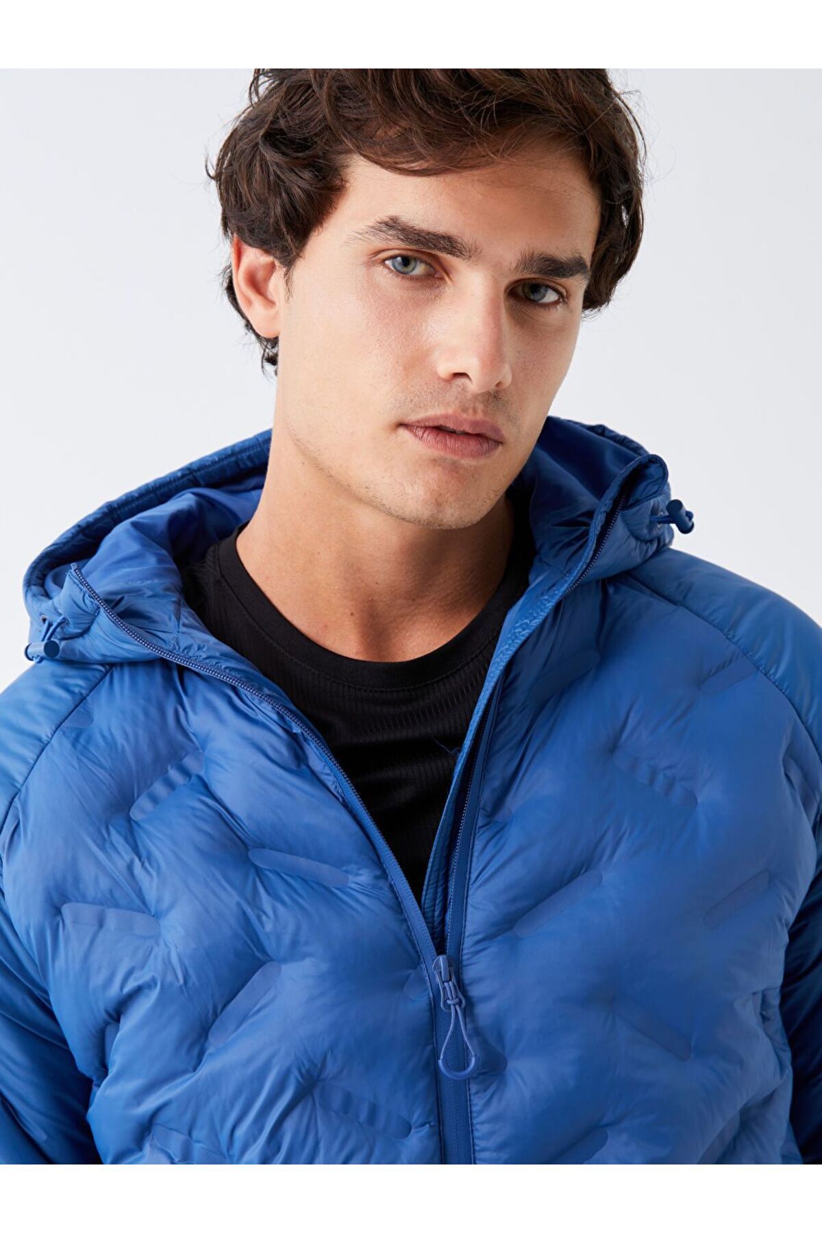 کاپشن پفی مردانه کلاه دار آبی استاندارد فیت