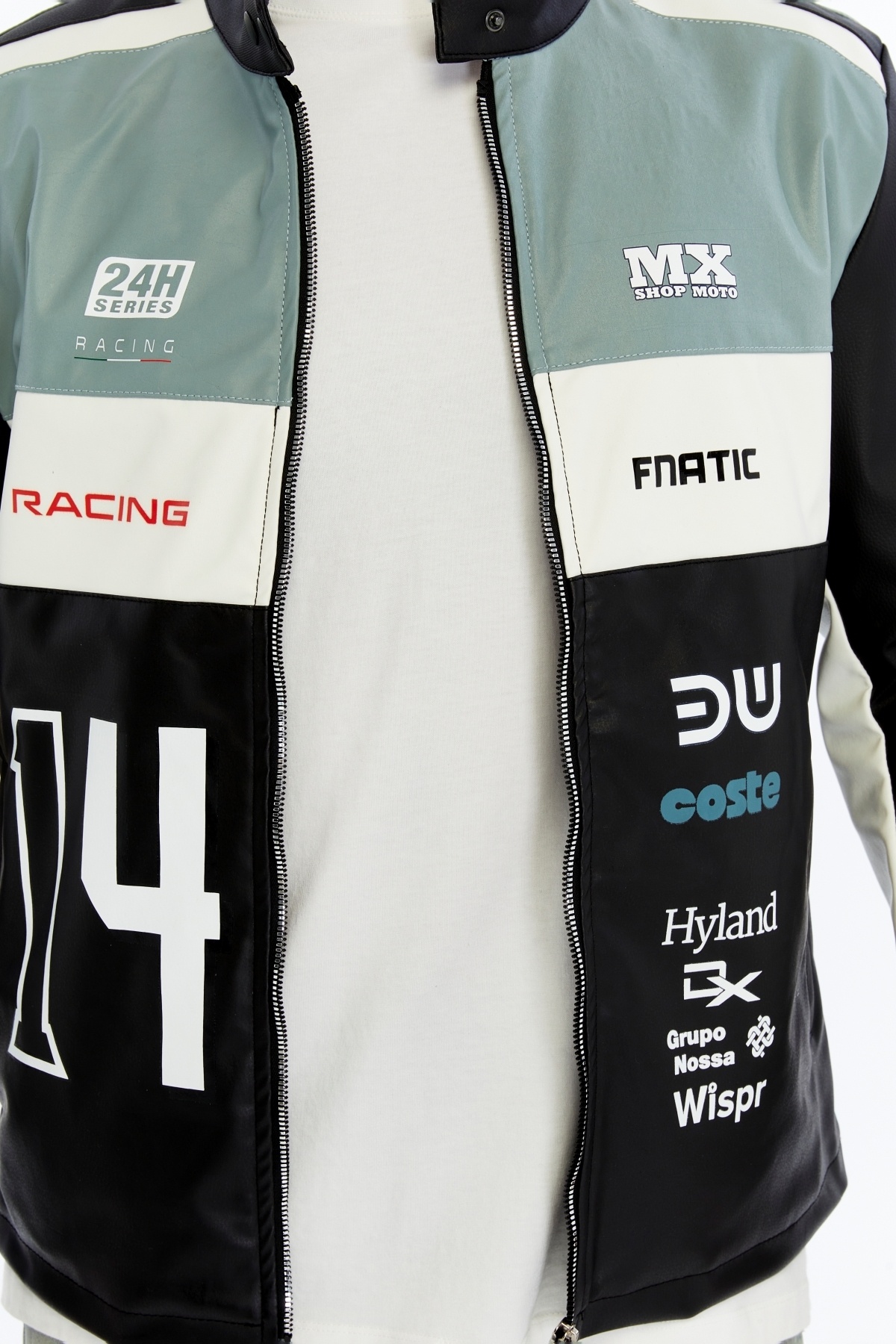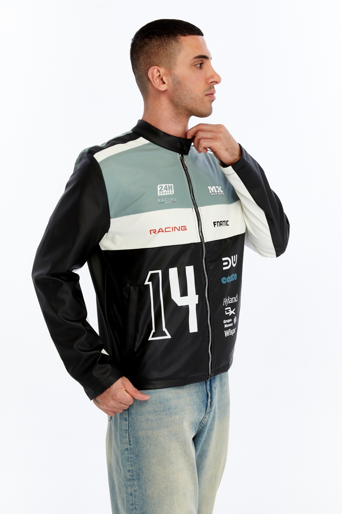 کاپشن چرمی مردانه طرح راه راه سایز بزرگ، کاپشن موتورسواری یقه ماندارین، کاپشن مسابقهای
