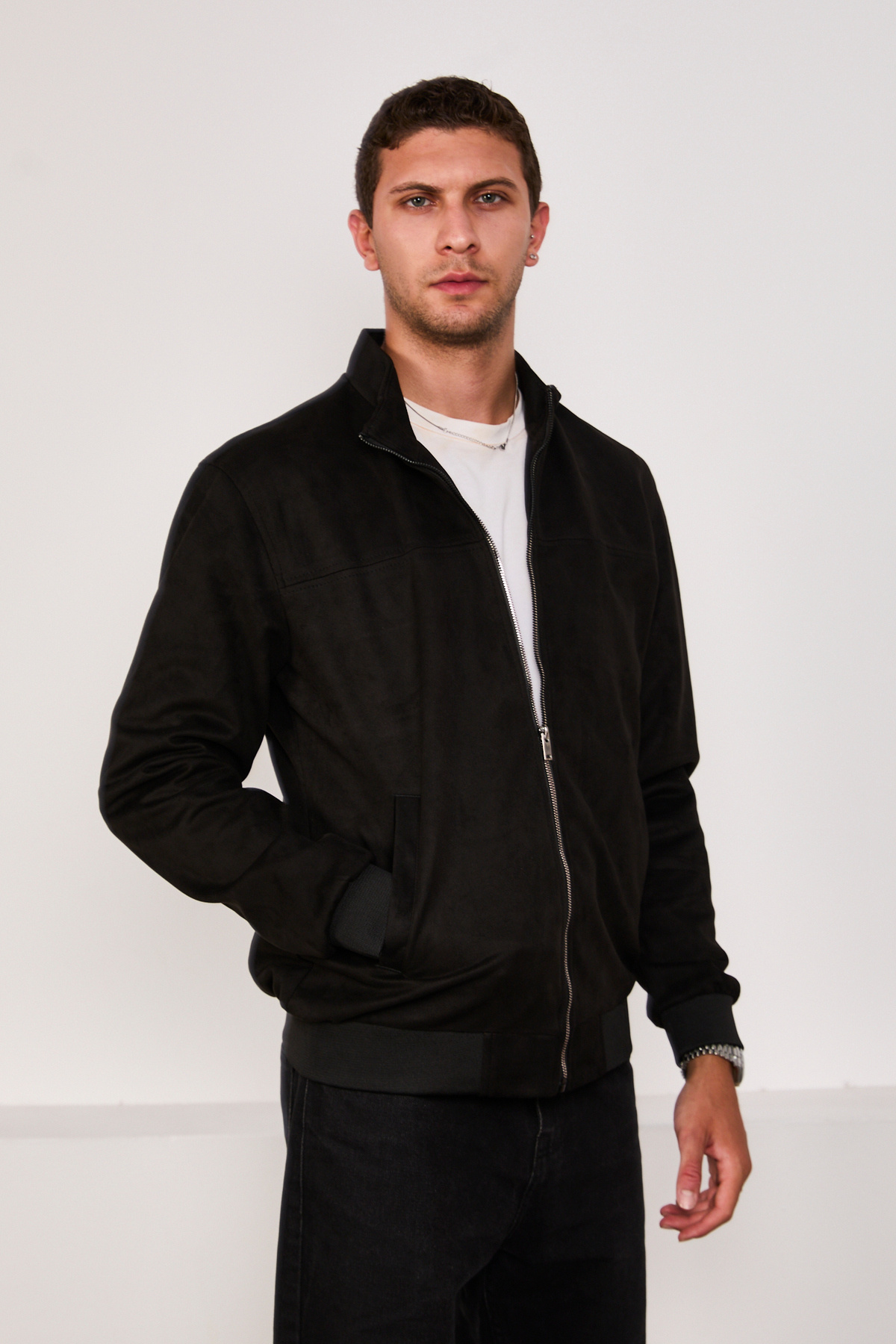 کاپشن مردانه جیر زیپدار طرح بمبر