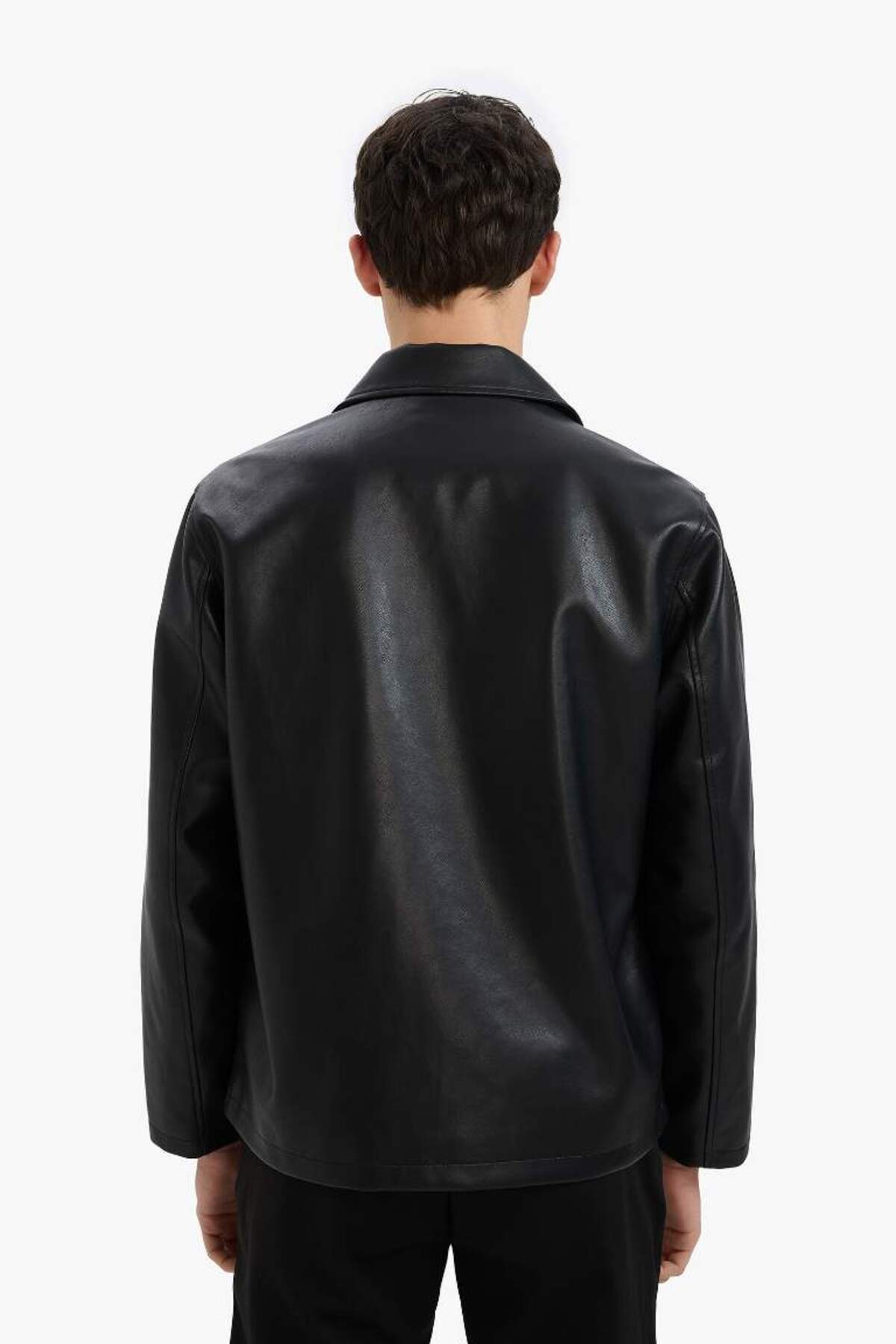 کاپشن زیپدار یقه گرد معمولی با جیبهای داخلی، مناسب برای استفاده بهاری و فصلی، کاپشن چرم مصنوعی E8888AX25AU