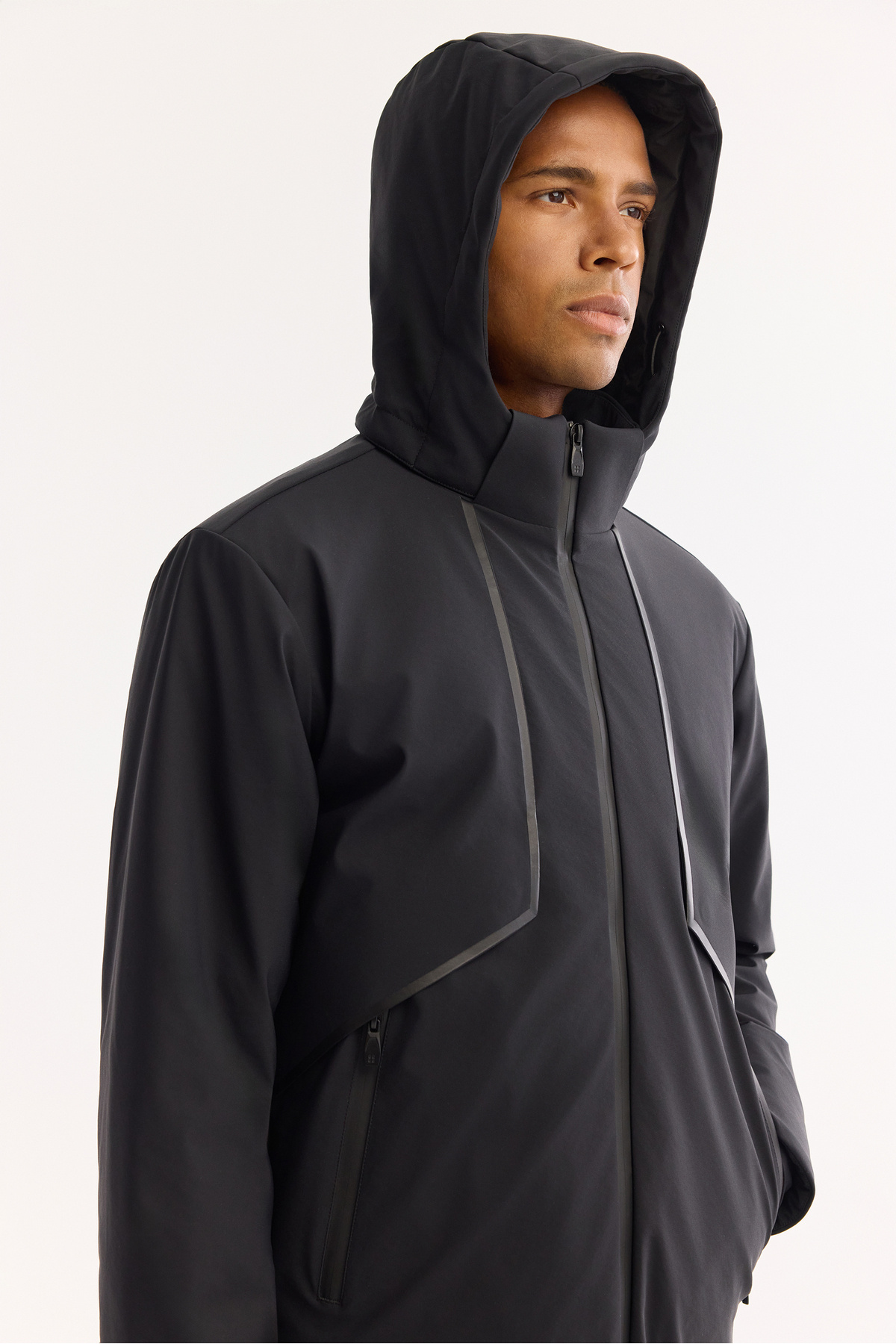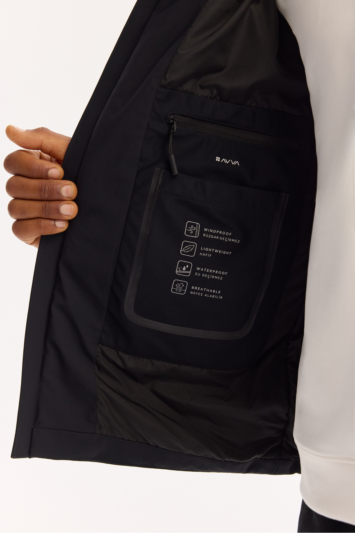 کاپشن مردانه کلاه دار مشکی ضد آب، ضد باد، سبک، مناسب فصل، سایز معمولی، A52Y6080