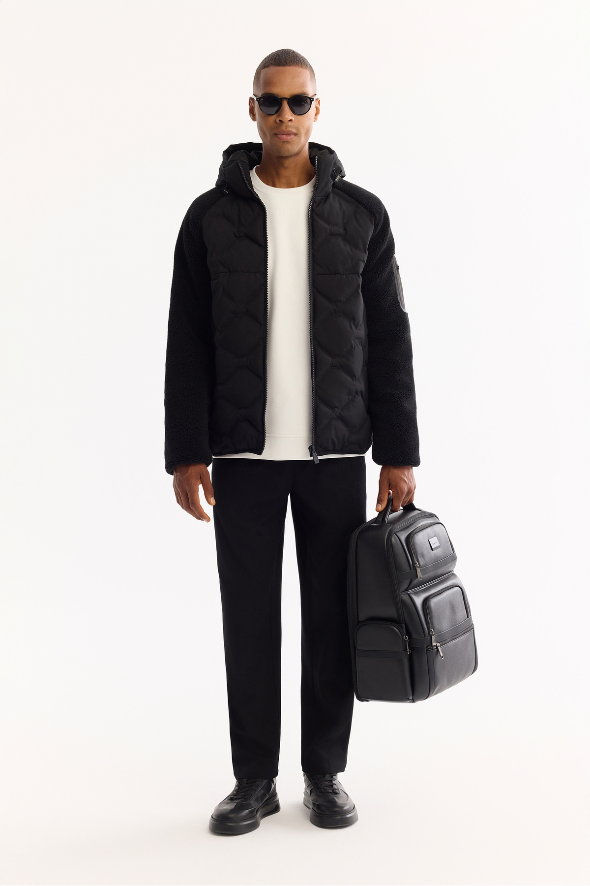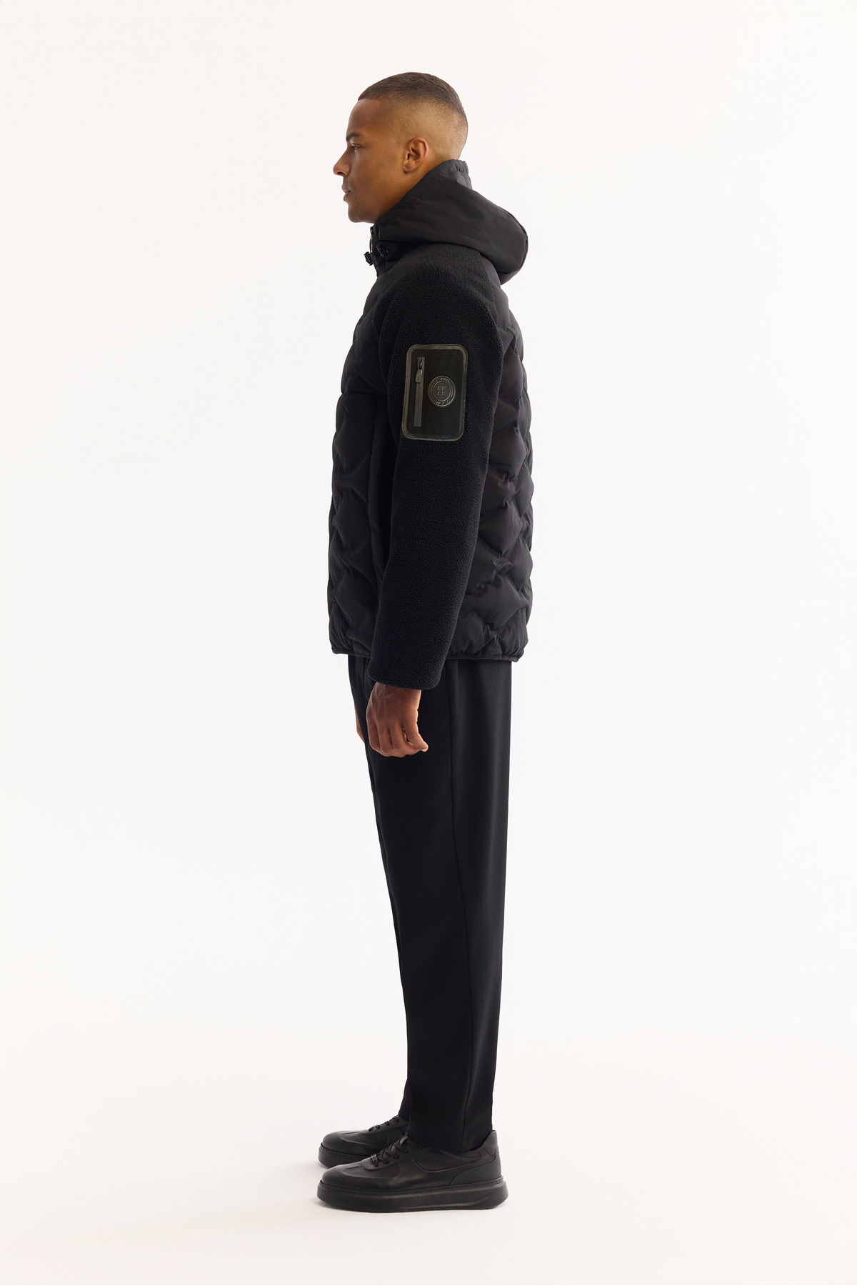 کاپشن مردانه کلاه دار مشکی، مقاوم در برابر باد -5 درجه، سایز معمولی، A52Y6077