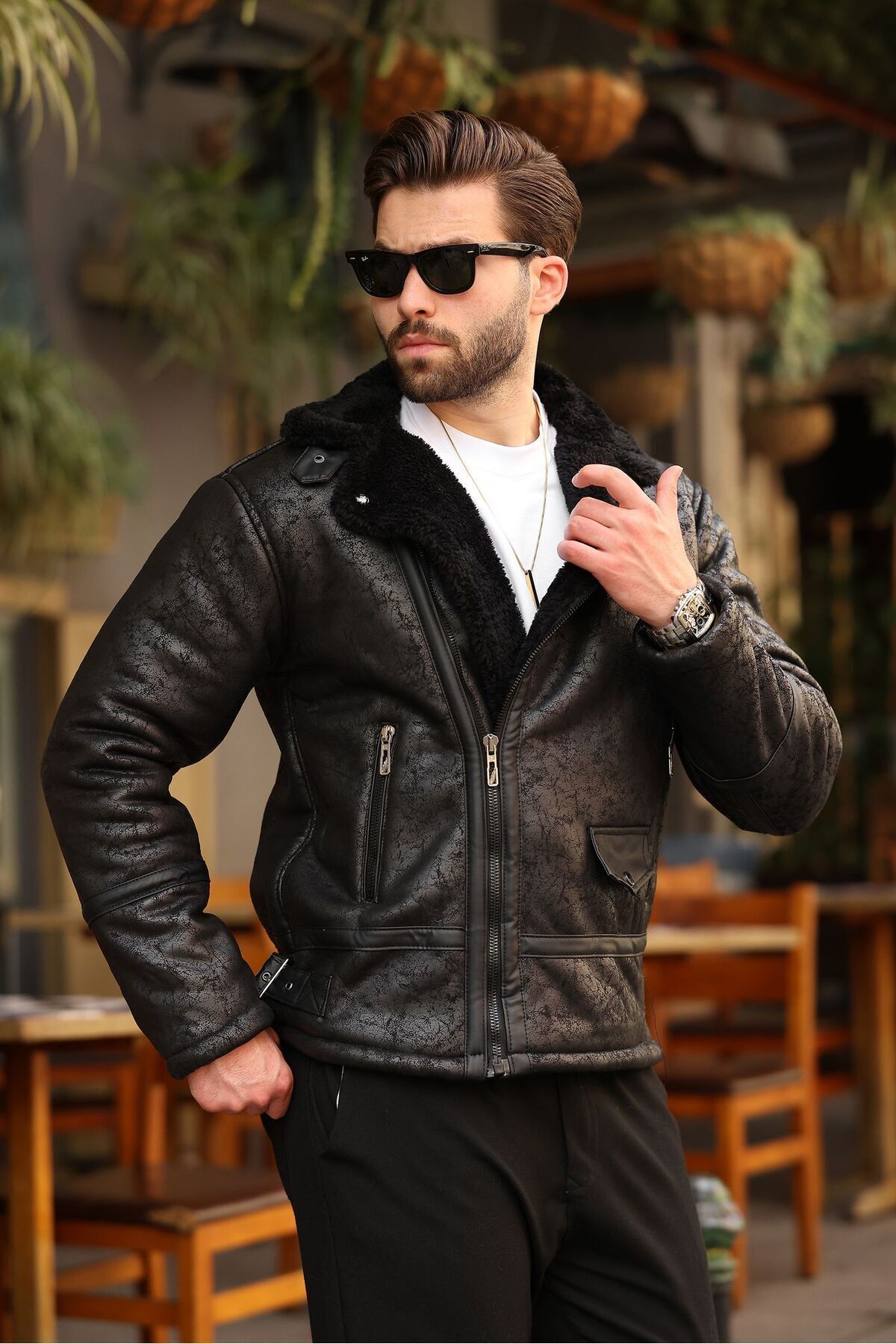کاپشن مردانه چرم مصنوعی با آستر خز -۱۱۱۹-