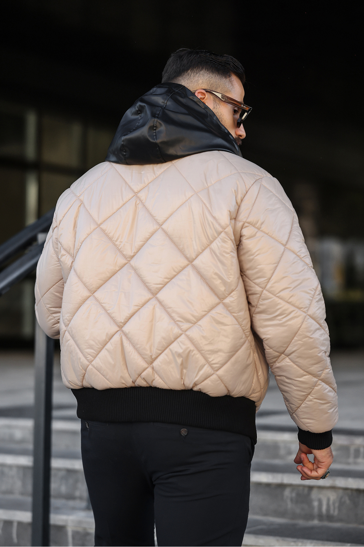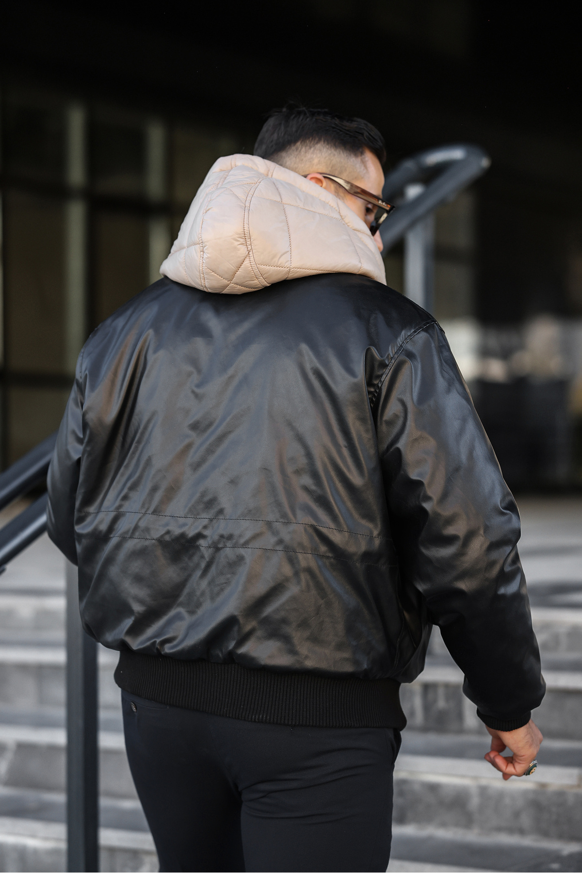 کاپشن چرمی زمستانی مردانه کلاه دار دو رو