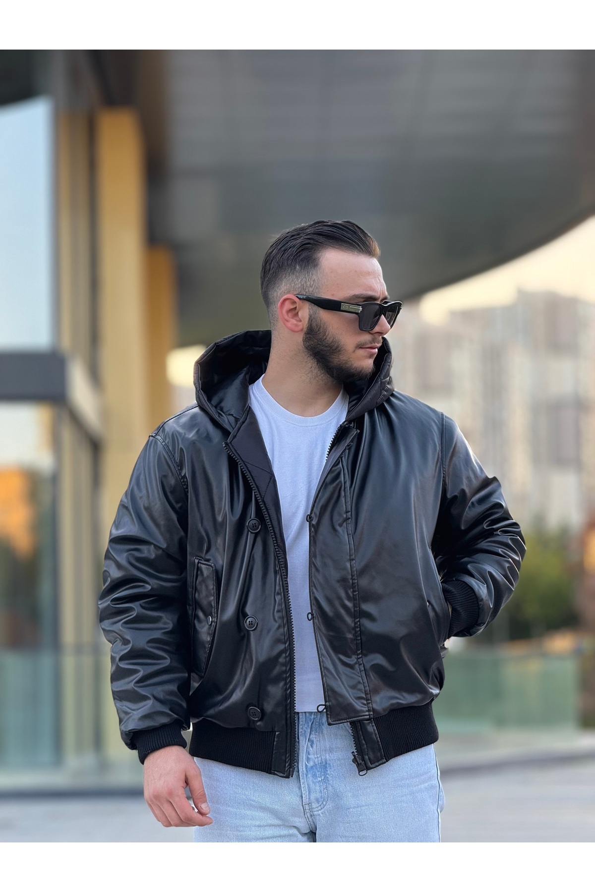 کاپشن مشکی آستین بلند چرم مصنوعی | | نمایندگی