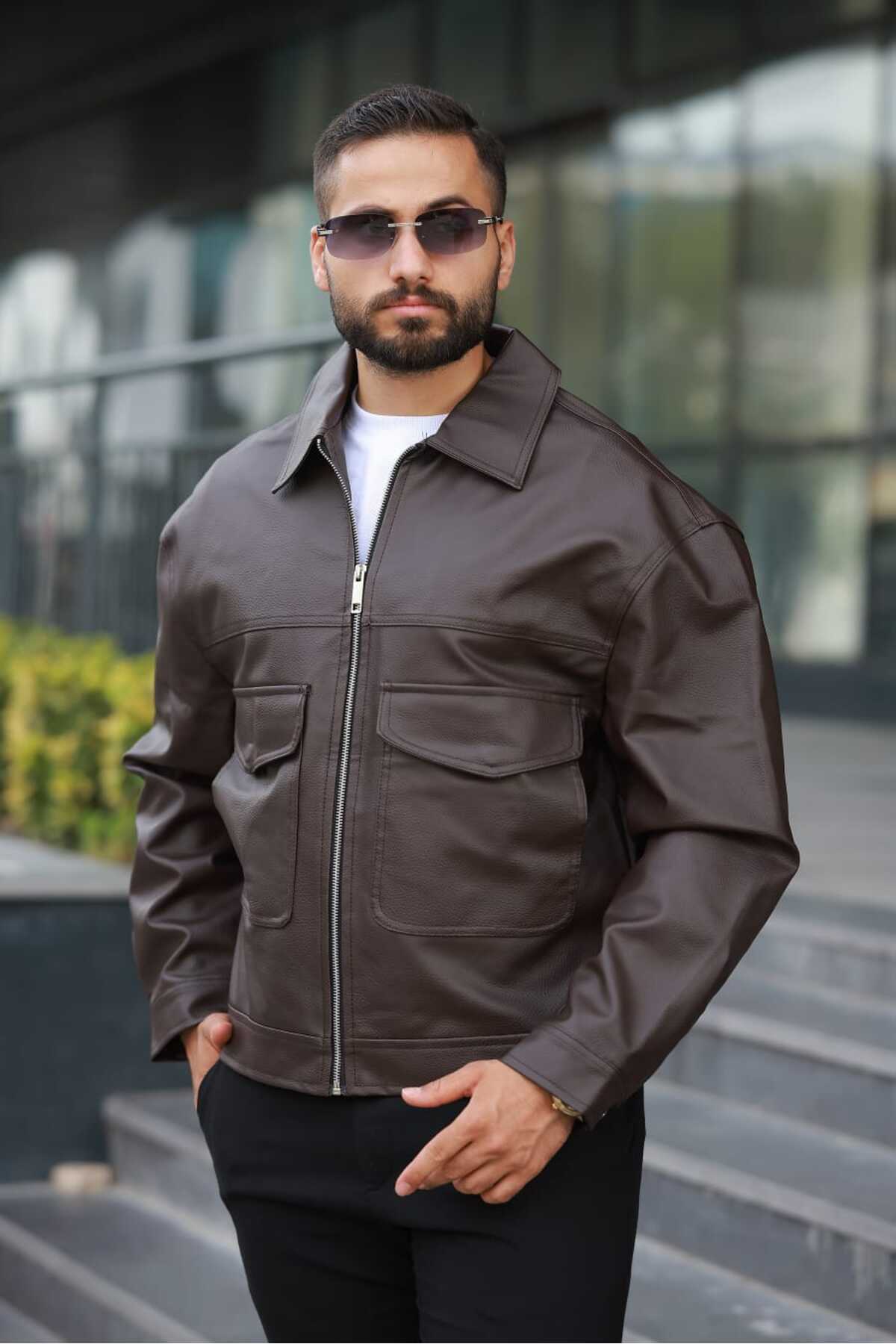 کاپشن قهوه ای آستین بلند چرم مصنوعی | | نمایندگی