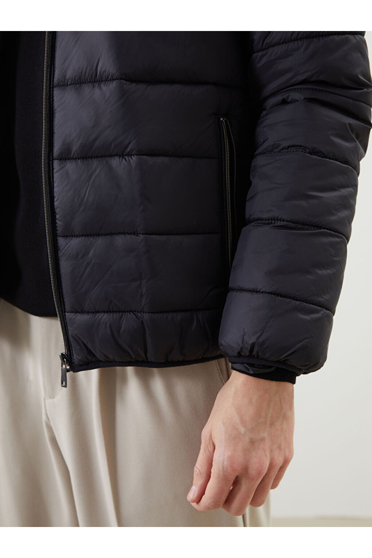 کاپشن پفی مردانه مشکی یقه ایستاده استاندارد فیت