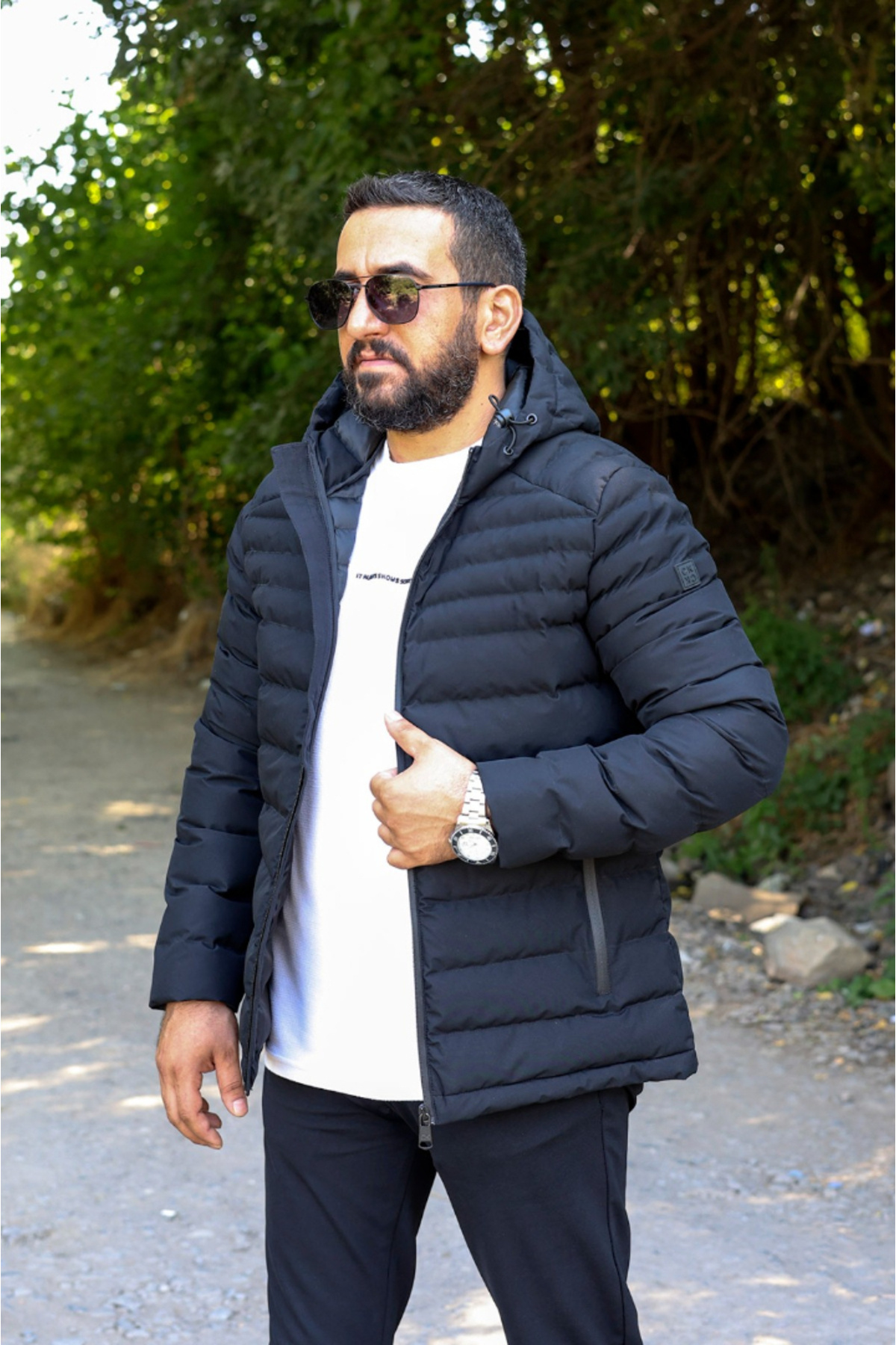 کاپشن زمستانی کلاه دار ضد باد مردانه از جنس الیاف آستردار