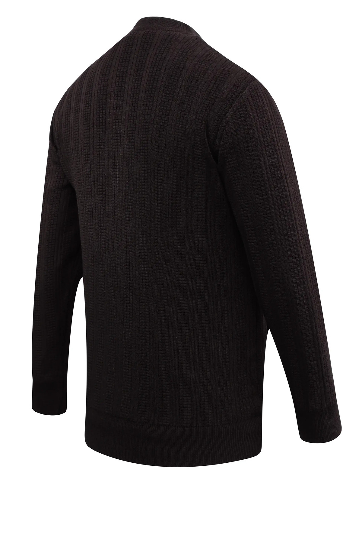 ژاکت بافتنی مردانه قهوهای آستردار با یقه ماندارین و طرح بافتنی استیل، مدل کلاسیک – 5209T