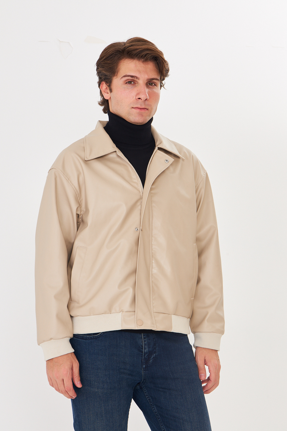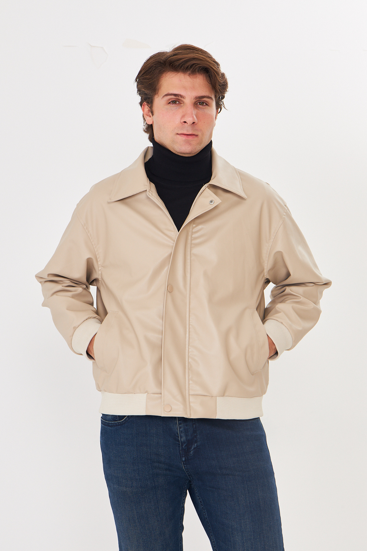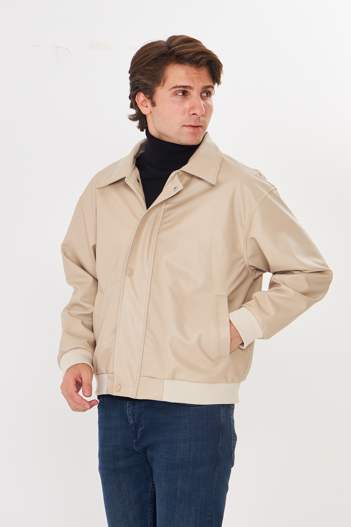 کاپشن بژ آستین بلند چرم مصنوعی | | نمایندگی