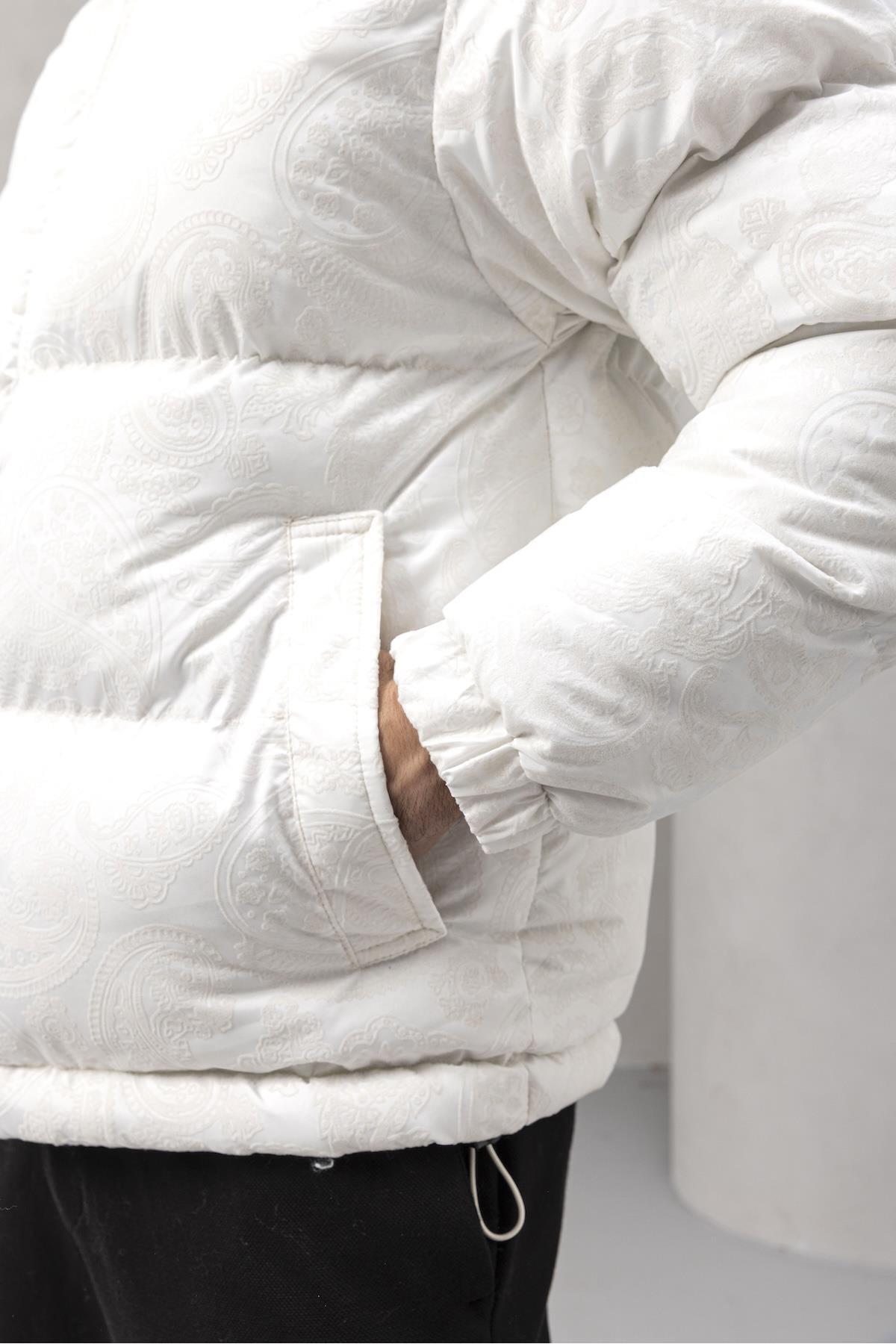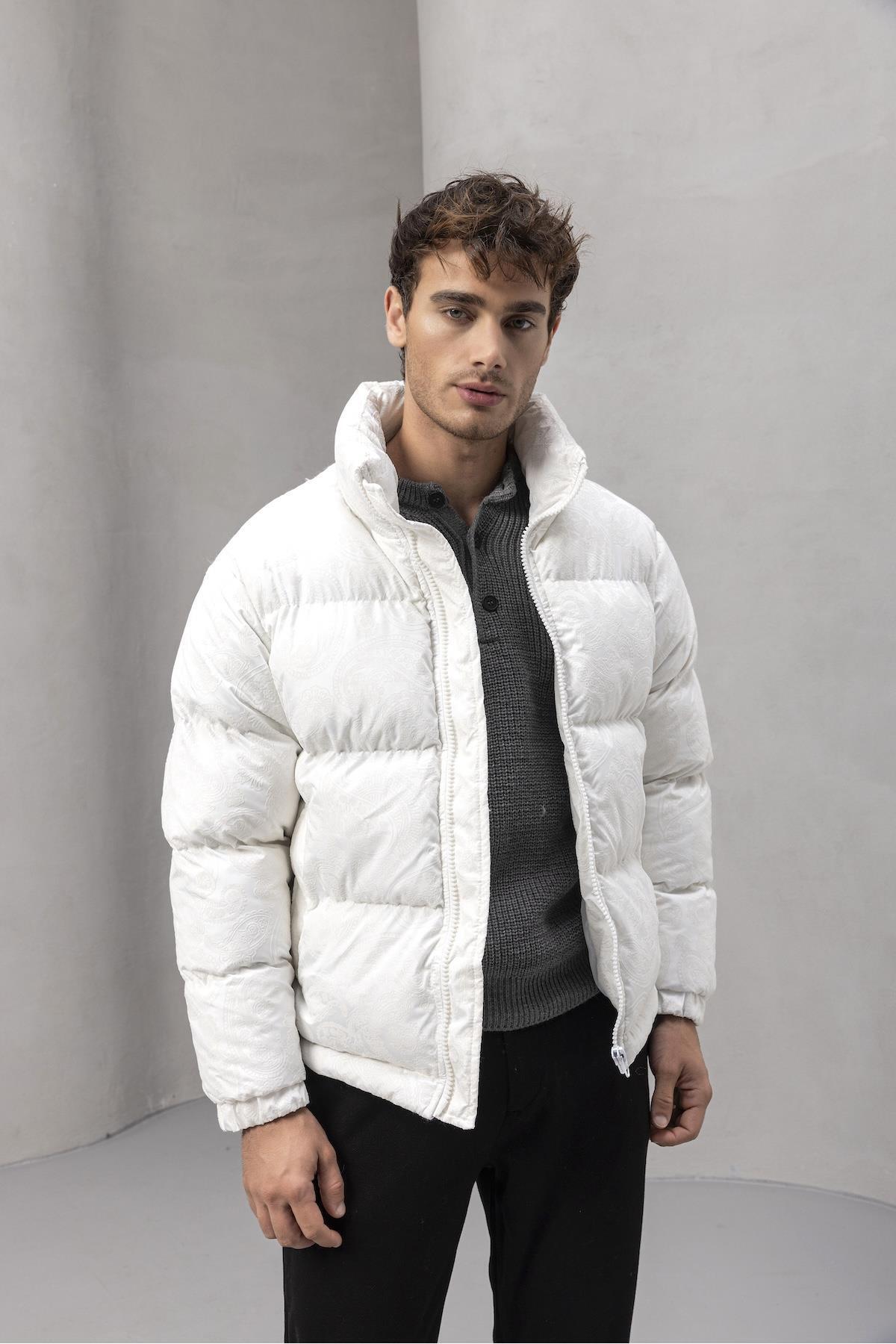 کاپشن مردانه پفی یقه بلند طرح قومی هارجو – رنگ کرم روشن