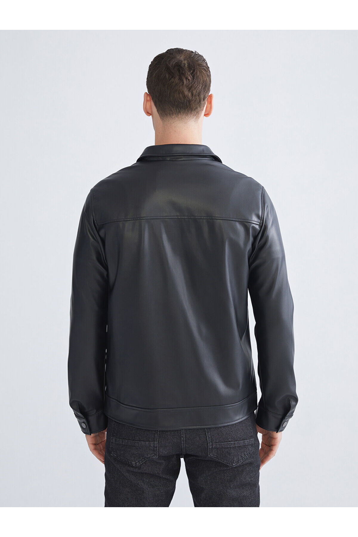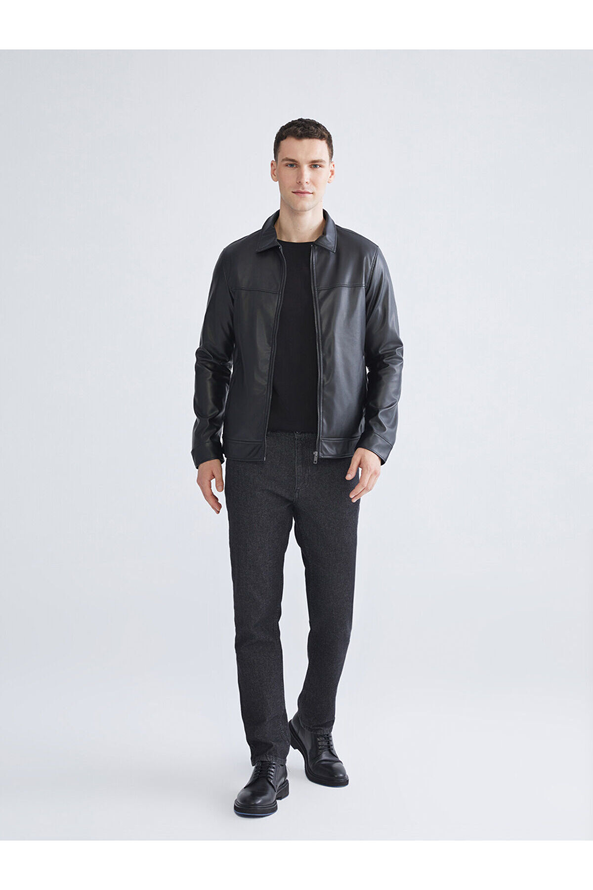 ژاکت چرمی مردانه مشکی یقه استاندارد فیت