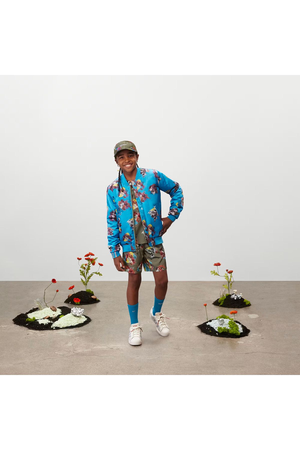 این ژاکت بمب افکن آدیداس x IVY PARK کودکان، عناصر طبیعی و ارگانیک را از طریق چاپ کریستالی رنگارنگ بررسی می کند.