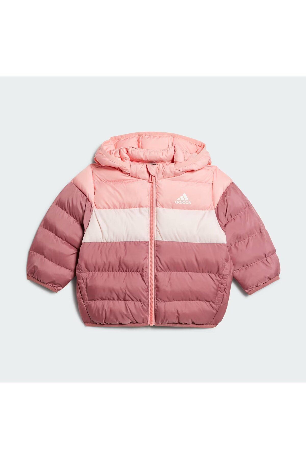 کاپشن آدیداس صورتی | ژاکت بچه گانه آدیداس از جنس پائین با تناسب معمولی زیپ تمام طول با کلاه قابل جابجایی 100% پلی استر (بازیافتی) عایق پرهای مصنوعی جیب های جلو بند کشی روی آستین ها و سجاف با بازتاب 360 درجه | نمایندگی آدیداس