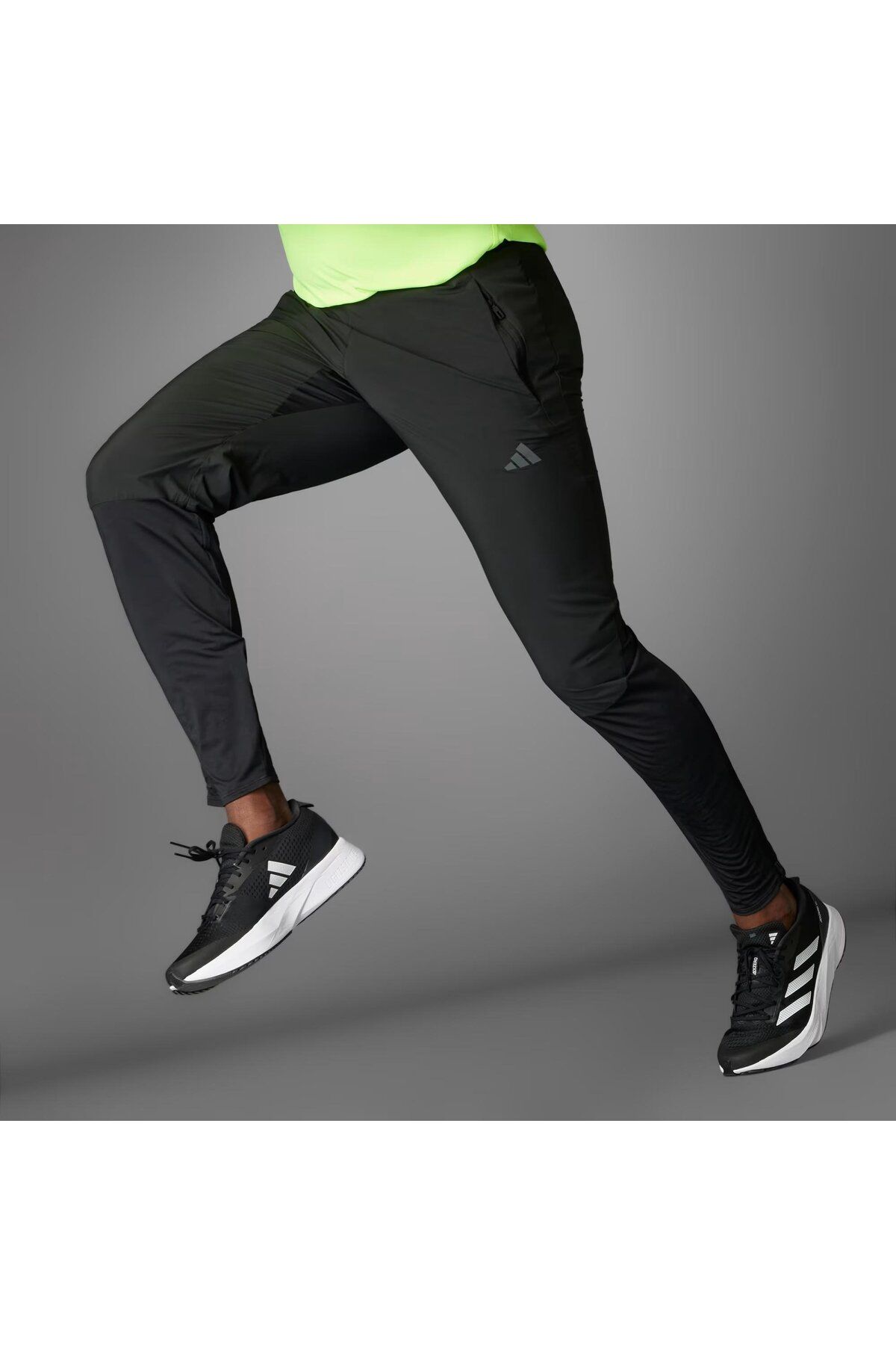 شلوار گرمکن ورزشی آدیداس مشکی | شلوار آدیداس مخصوص دویدن مردانه آدیزرو رانینگ با تناسب معمولی بند کشی الاستیک در کمر 100% پلی‌استر (بازیافتی) جیب‌های زیپی کناری متوسط ​​با قلاب کلید زیپ‌های مچ پا آرم انعکاسی | نمایندگی آدیداس