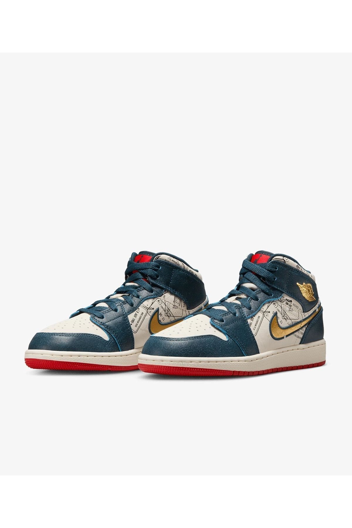 اسنیکر نایکی رنگارنگ چرم پاشنه تخت | کفش های بچه گانه قدیمی Air Jordan 1 Mid SE. | نمایندگی نایکی