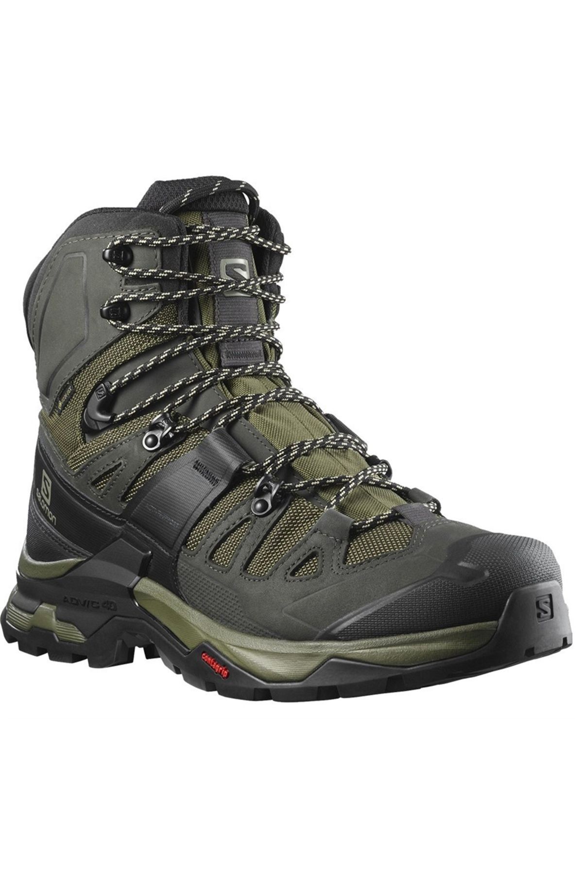 کفش سالامون طبیعت گردی خاکی پلی استر ContaGrip | چکمه های کوتاه مردانه خاکی Salomon Quest 4 Gtx Olive Nig جزئیات طراحی شده برای سفرهای طولانی مدت و شرایط چالش برانگیز، QUEST جذاب و پشتیبانی کننده است.