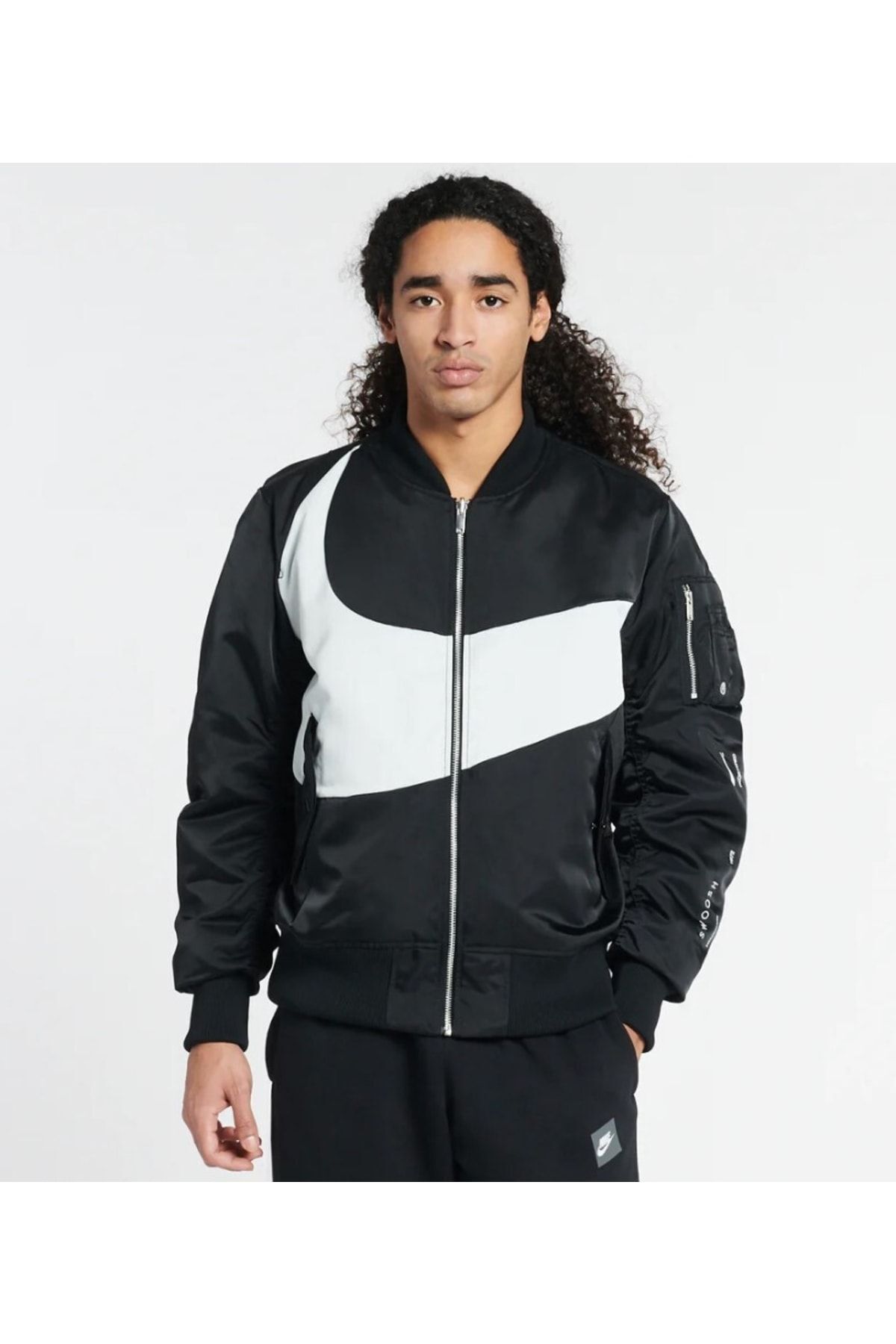 کاپشن نایکی مشکی | Nike Sportswear Synthetic Fill Swoosh Bomber دو کت در یک است. از پارچه جناغی ساتن کاملا دو طرفه و ضد آب ساخته شده است. جزئیات محصول: ژاکت بمب افکن Swoosh Synthetic Swoosh Sportswear Nike