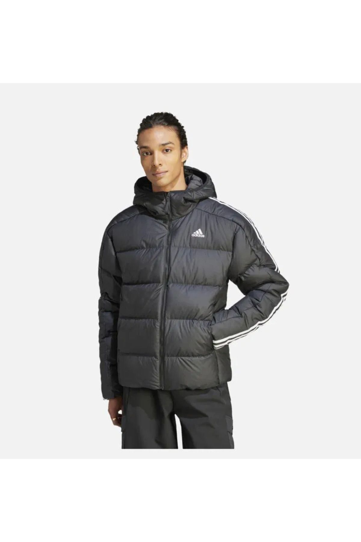 کاپشن آدیداس مشکی آستین استاندارد پنبه ای | کت مردانه هودی با زیپ کامل adidas Essentials Midweight Down 3-Stripes | نمایندگی آدیداس