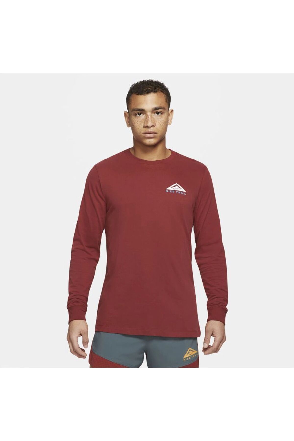 تیشرت نایکی قرمز آستین بلند پنبه ای | با آستین بلند جدید Nike DriFIT Trail هر مسیری را فتح کنید.