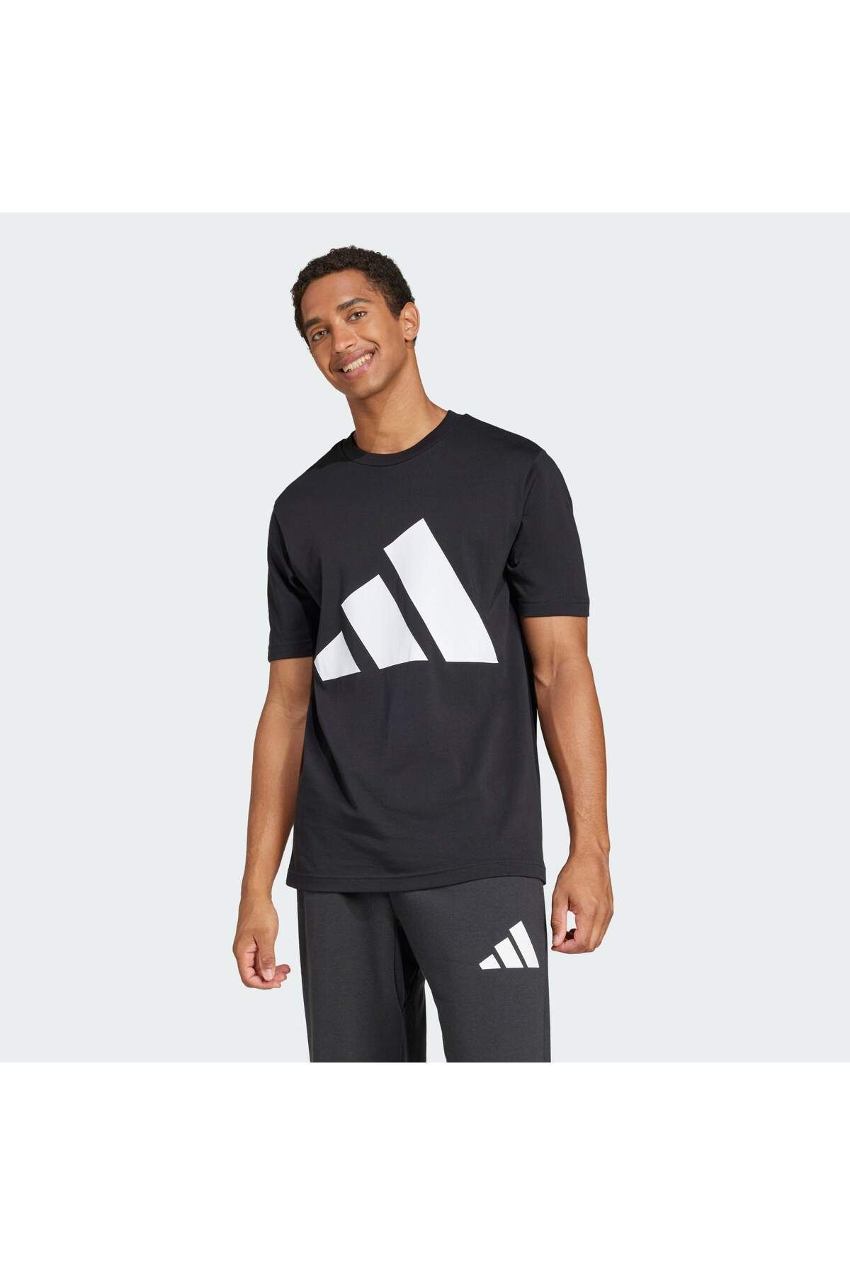 تیشرت آدیداس مشکی آستین کوتاه پنبه ای | این تی‌شرت آدیداس با تغییری تازه در یک تی‌شرت کلاسیک، یک لوگوی بزرگ 3 نواری را روی سینه چشمک می‌زند.