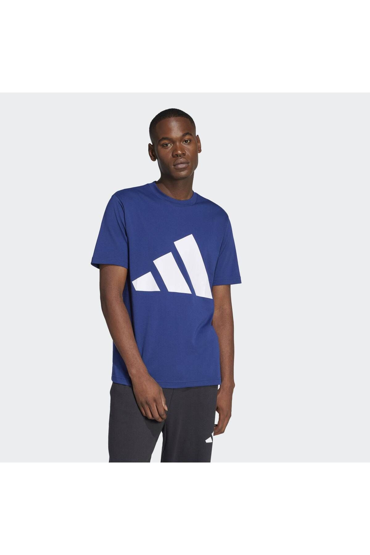 تیشرت آدیداس آبی آستین کوتاه پنبه ای | این تی‌شرت آدیداس با تغییری تازه در یک تی‌شرت کلاسیک، یک لوگوی بزرگ 3 نواری را روی سینه چشمک می‌زند.