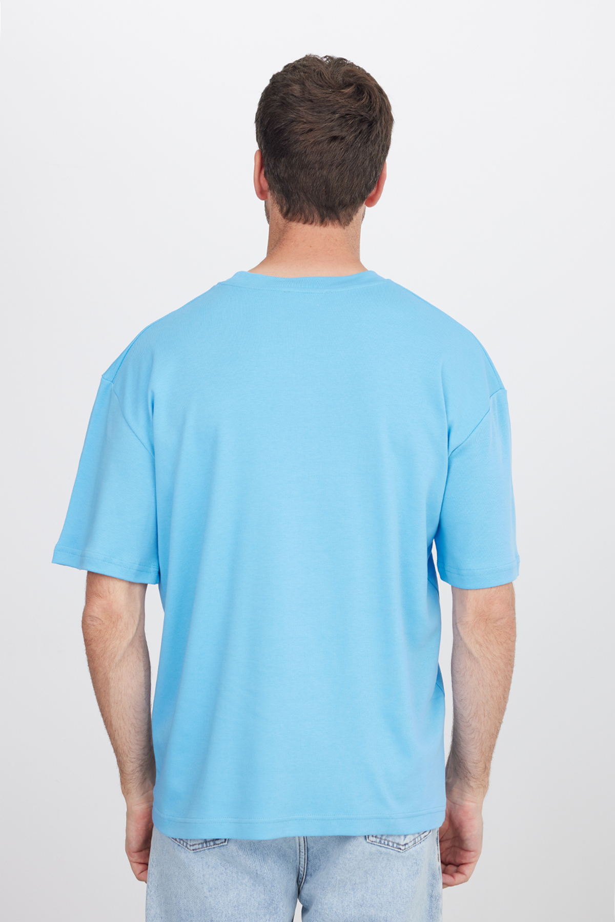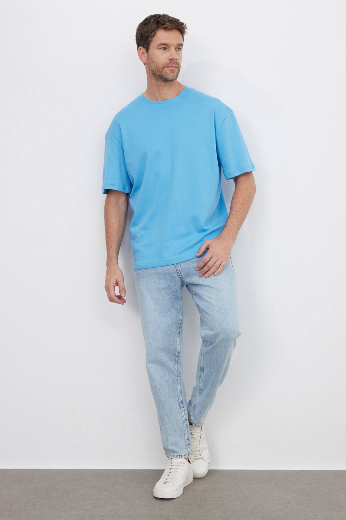 تیشرت یقه گرد آبی رنگ، سایز بزرگ، ۱۰۰٪ پنبه، بافت نرم