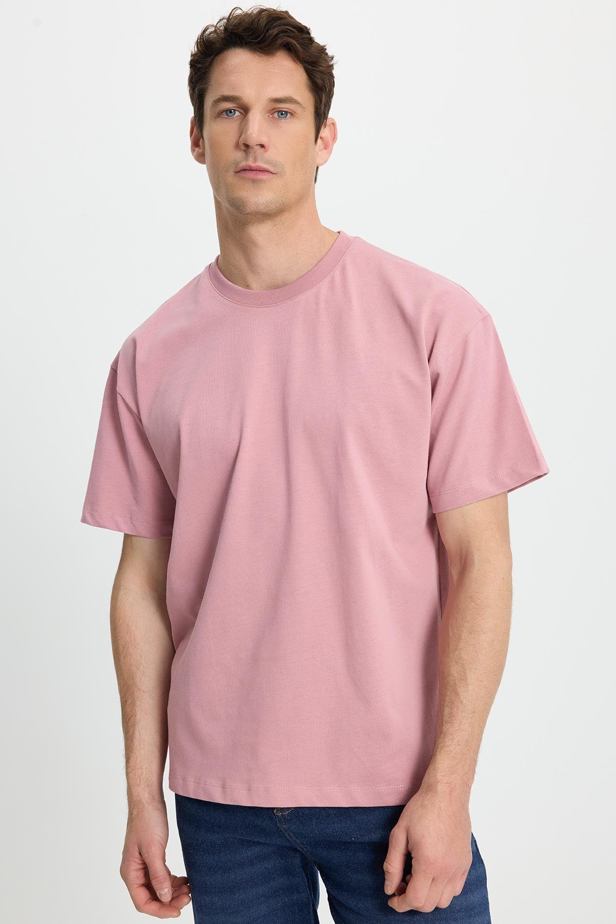 تیشرت یقه گرد مردانه طرح جعبهای گشاد، ۱۰۰٪ پنبه، یاسی