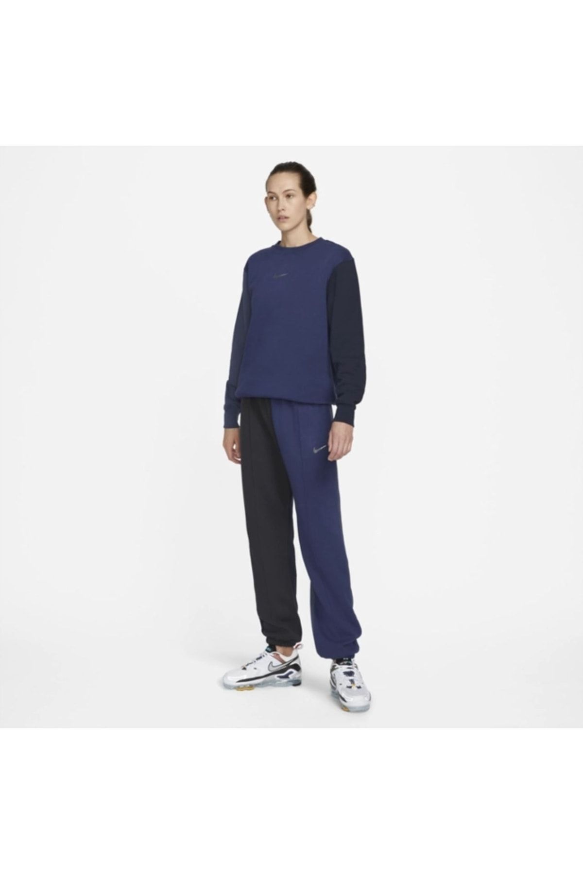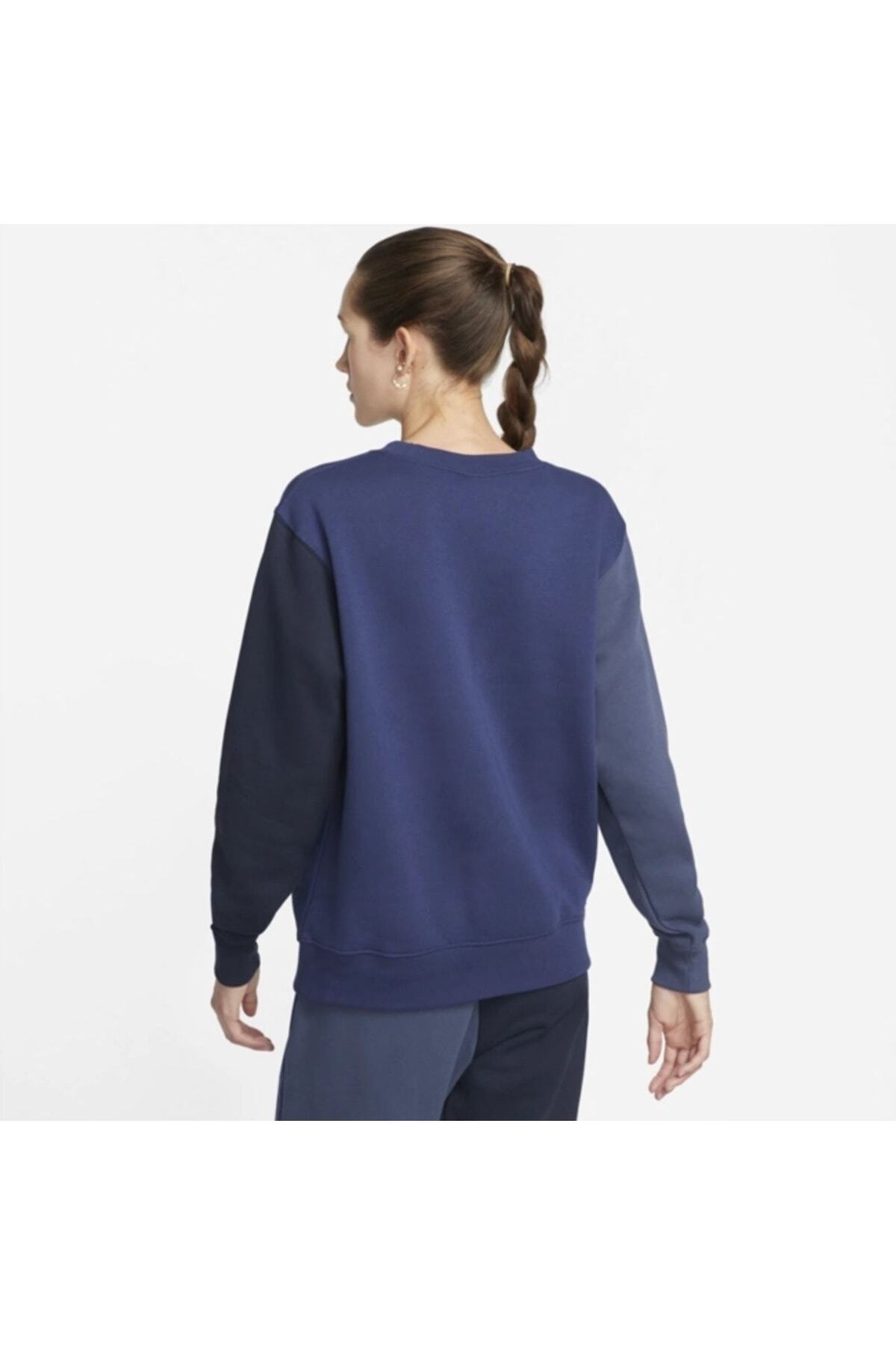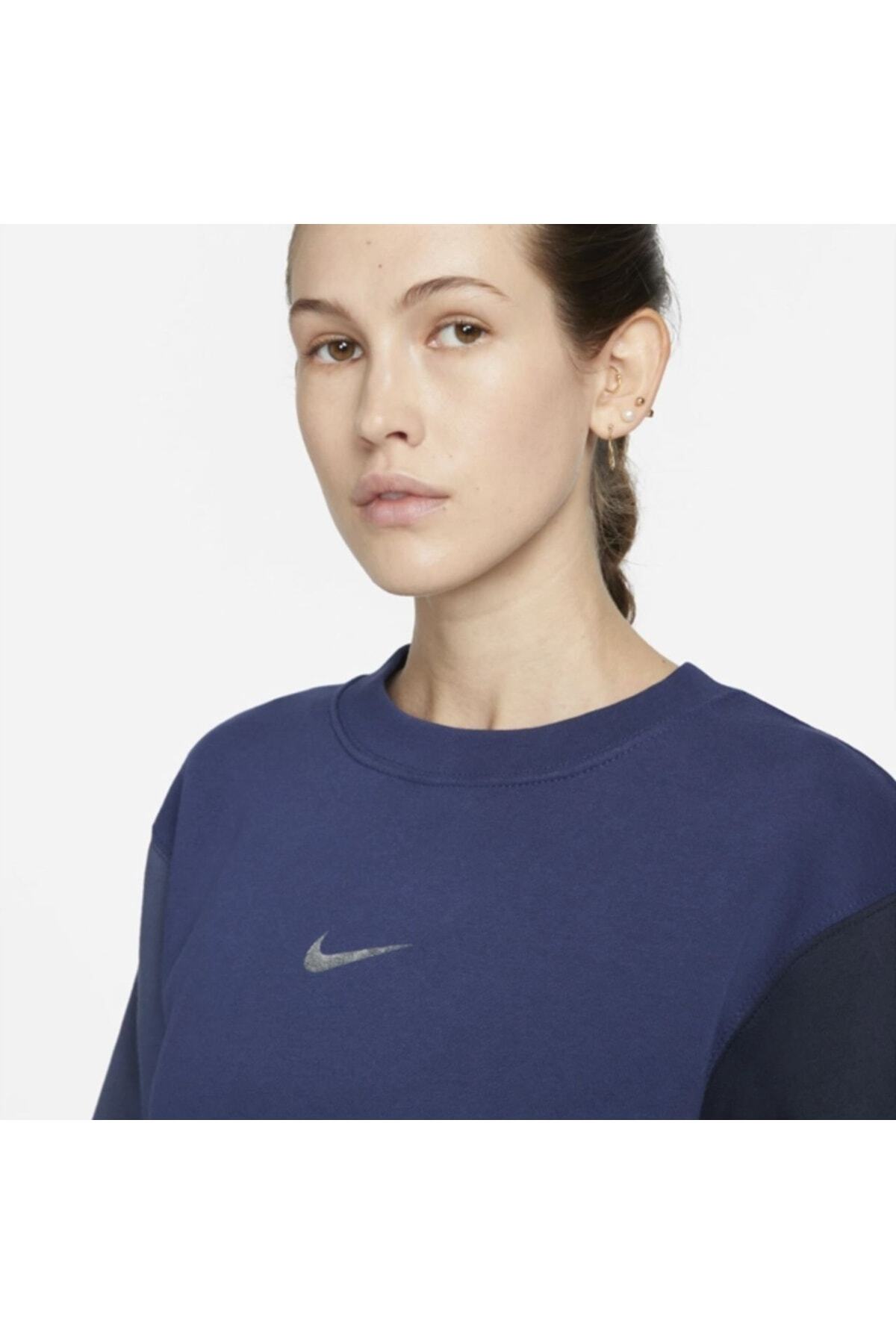 سویشرت نایکی آبی سرمه ای آستین بلند پنبه ای | سویشرت زنانه سایز بزرگ Nike Sportswear Collection Essentials با تکنولوژی پارچه پشمی نرم تولید شده است.