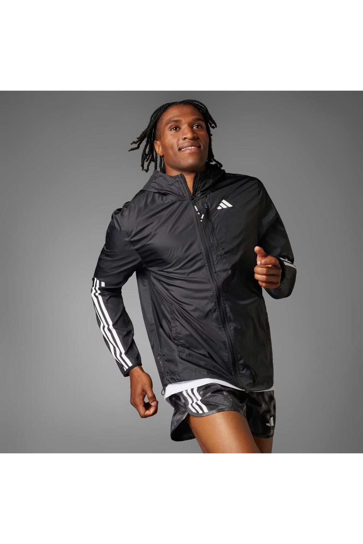 سویشرت آدیداس مشکی Trend / ترند | سویشرت مردانه آدیداس Own The Run 3 Stripes Slim fit زیپ تمام قد کلاهدار 100% پلی استر بازیافتی با بافت ساده WIND.RDY جیب سینه زیپ دار جیب های جانبی با چسباندن محکم لبه های قابل تنظیم جزئیات انعکاسی | نمایندگی آدیداس