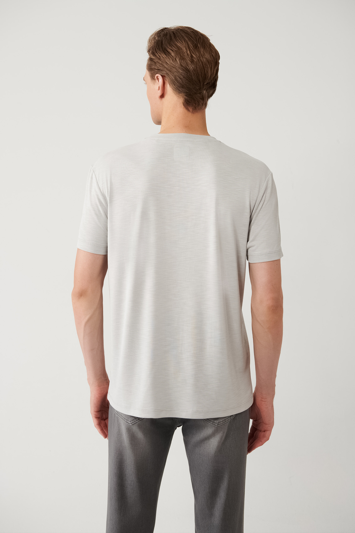 تی شرت مردانه یقه گرد طرح دار خاکستری A41Y1136