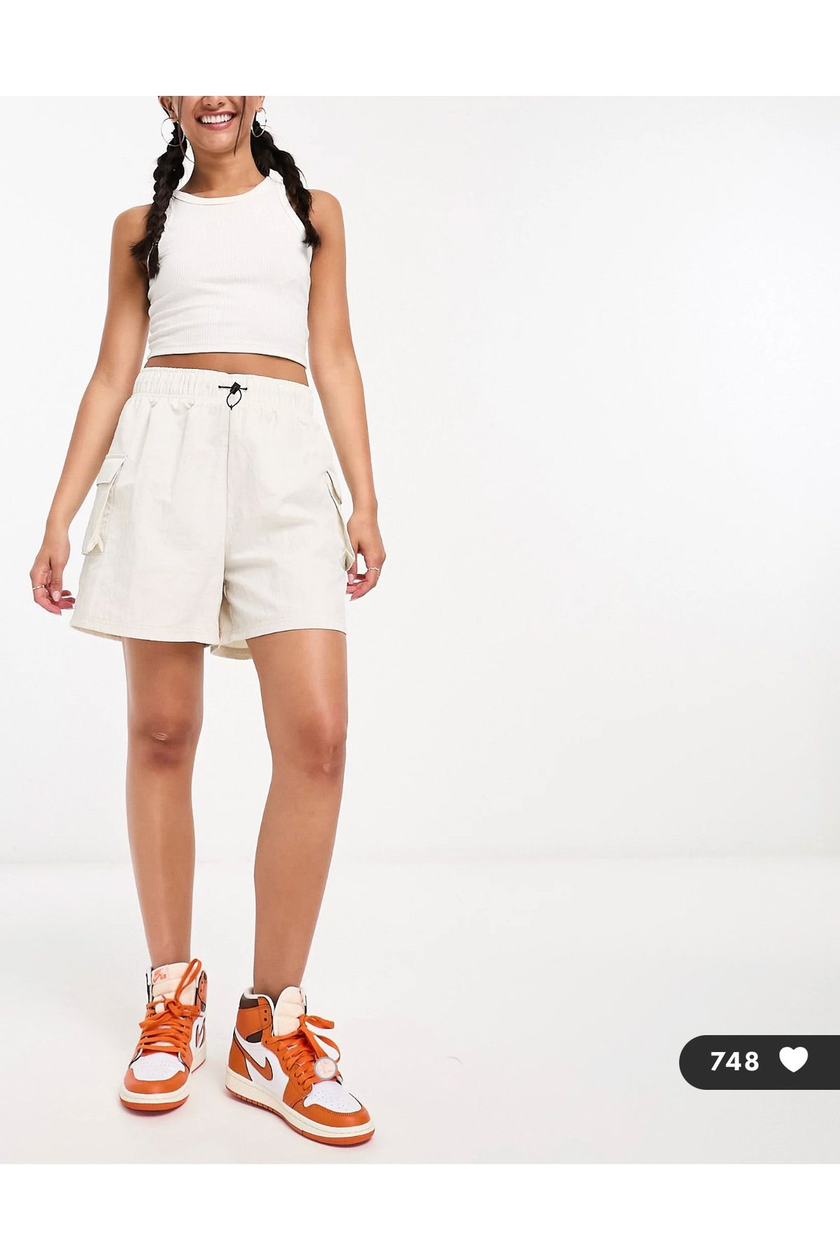 شورت و شلوارک نایکی بژ | شورت ورزشی با طول متوسط ​​و ارتفاع کمر استاندارد طراحی شده و راحتی و استایل را در کنار هم در حین انجام ورزش ارائه می دهد.